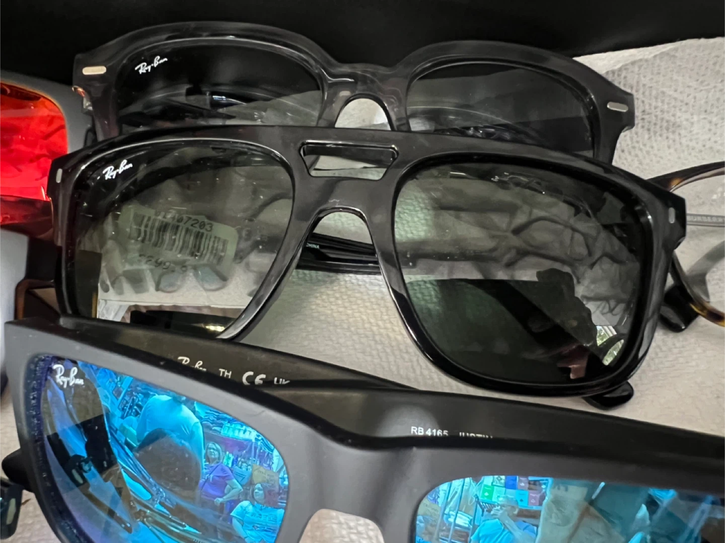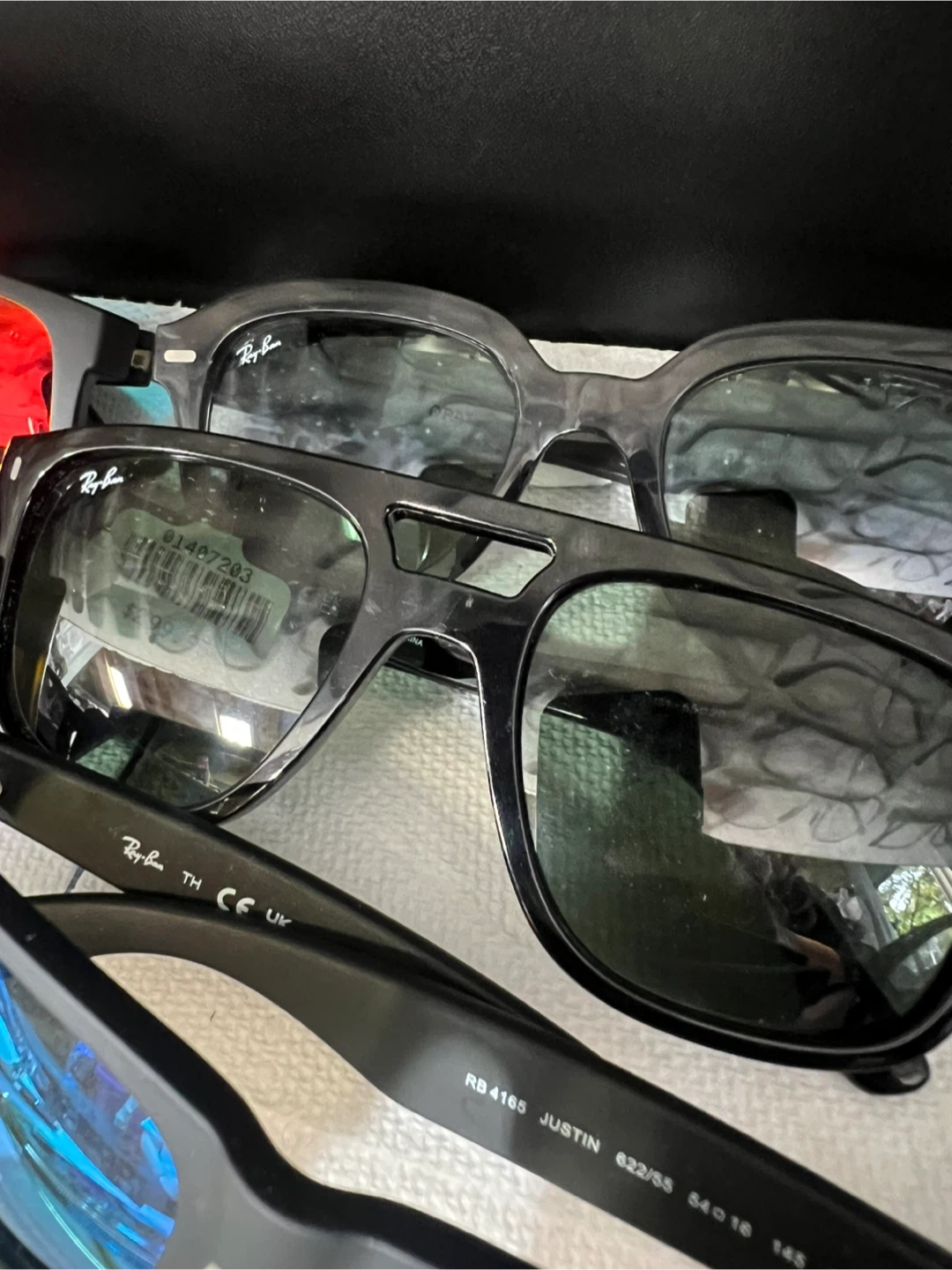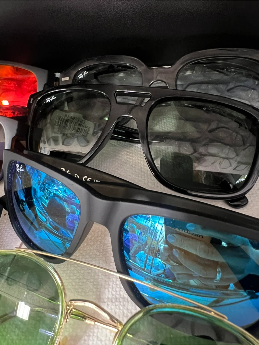 A selection of Ray-Ban sunglasses in various styles and colors. Check out the photos for different models and designs!