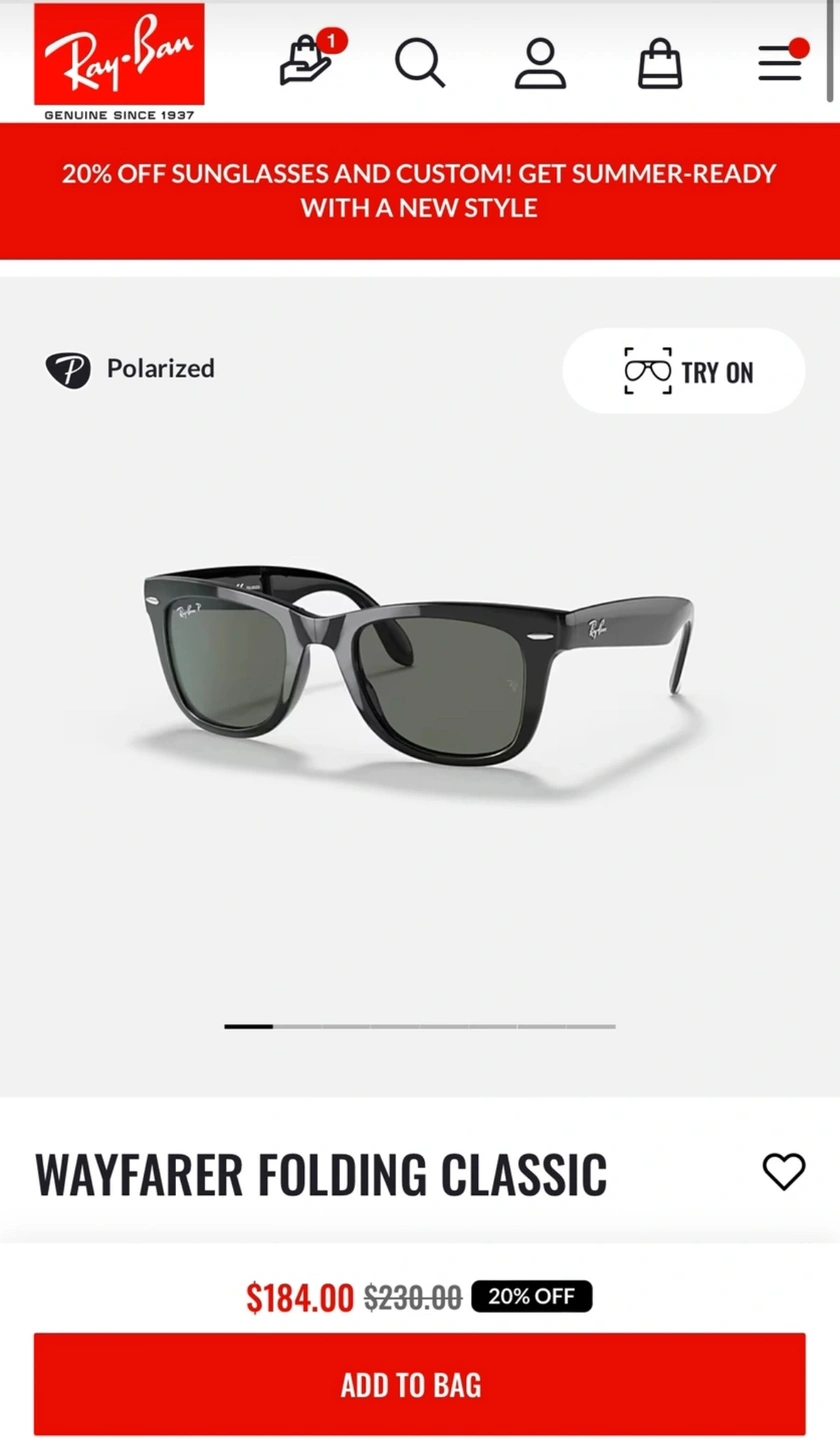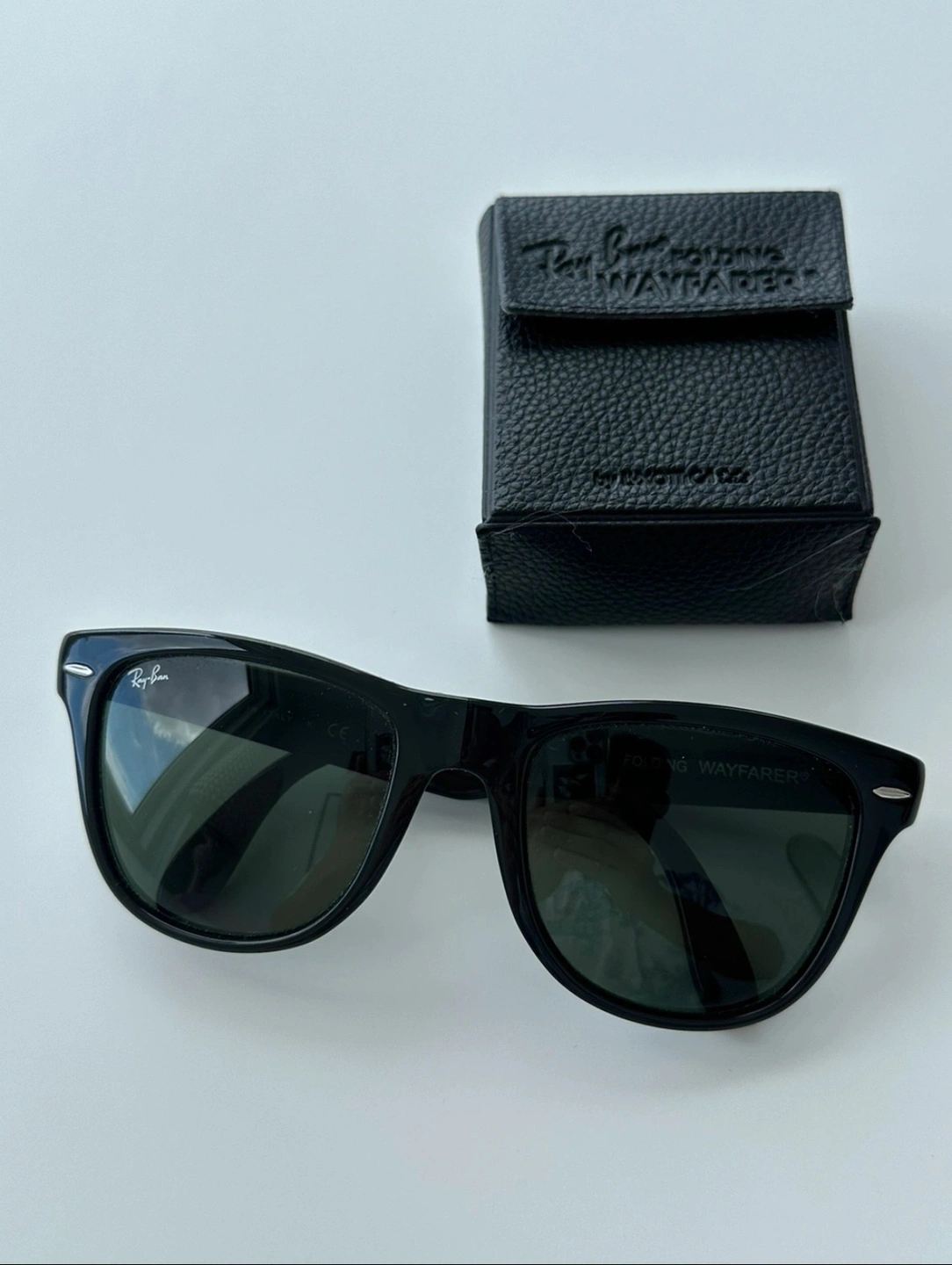 Ray-Ban Wayfarer Folding Sunglasses in black with black case.