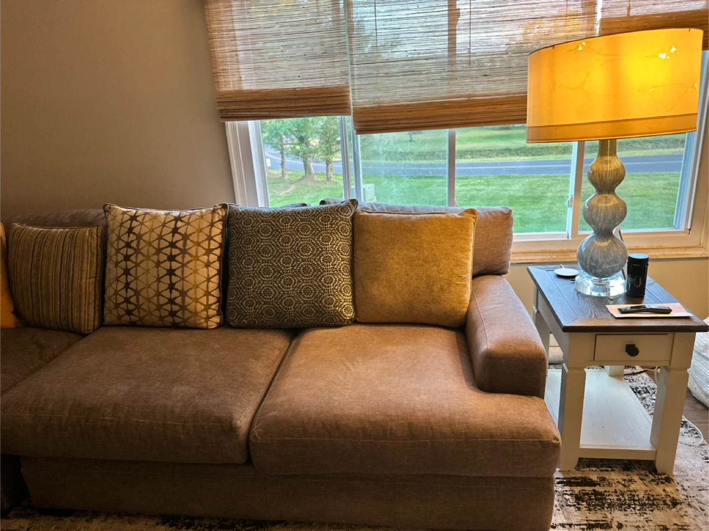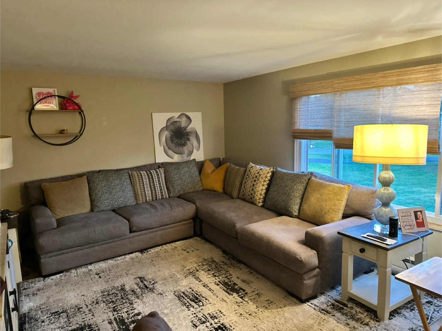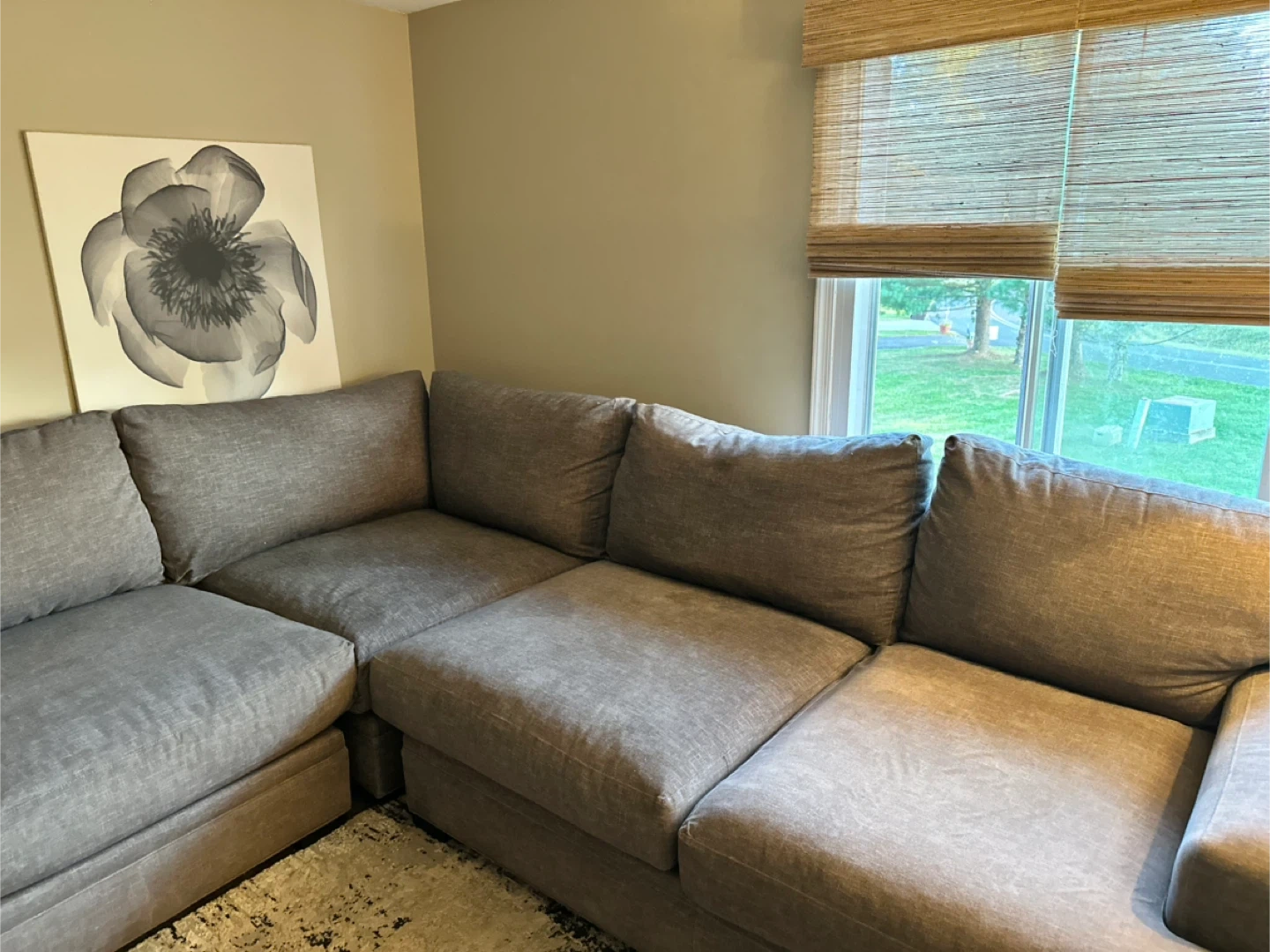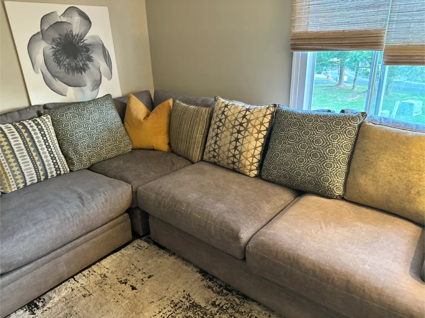 Selling a comfortable large gray sectional sofa! It's in good condition and ready for a new home. Perfect for a living room or entertainment space. Moving and it doesn’t fit our space.