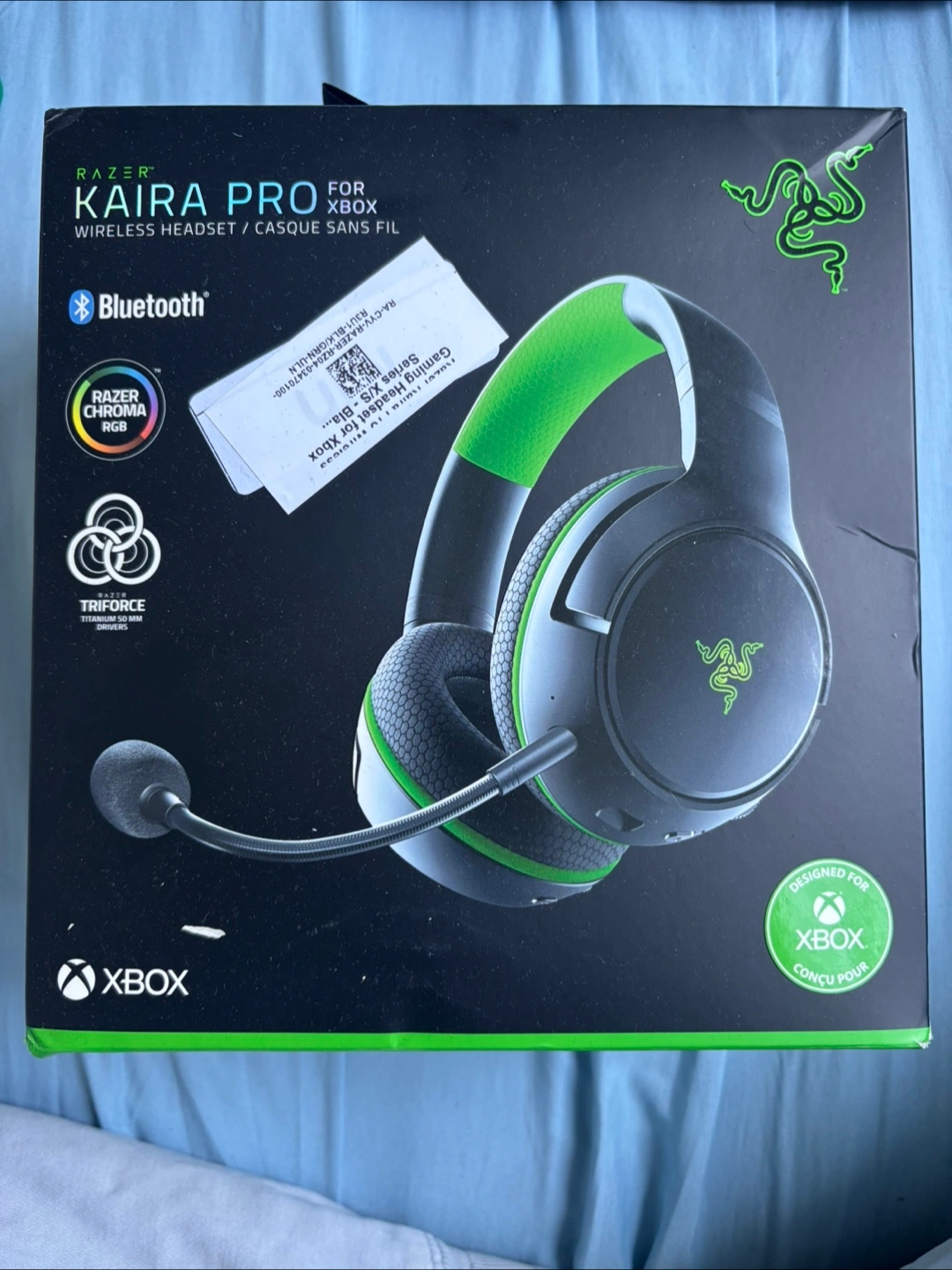 12Selling a brand new Razer Kaira Pro wireless headset for Xbox! It's still in its original packaging. This headset features Bluetooth connectivity, Razer Chroma RGB lighting, and TriForce Titanium 50mm drivers for an amazing gaming experience. Designed for Xbox Series X/S. BRAND NEW!!!