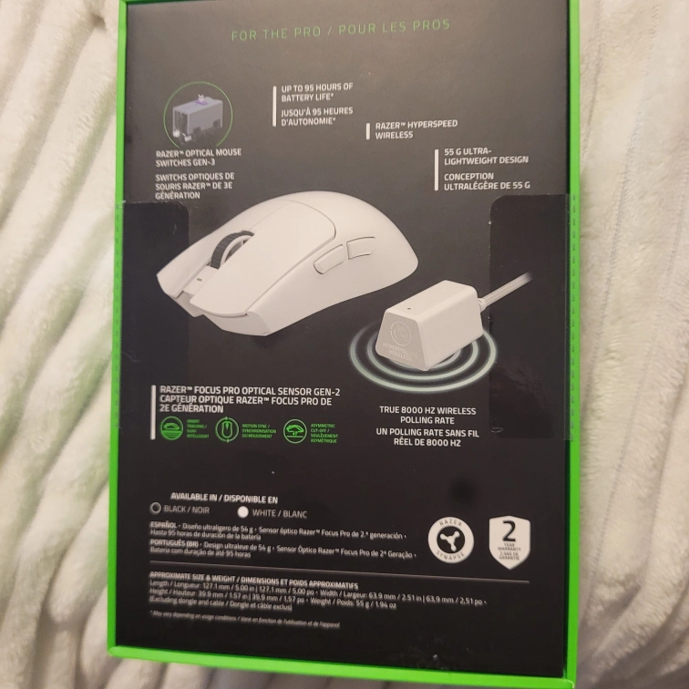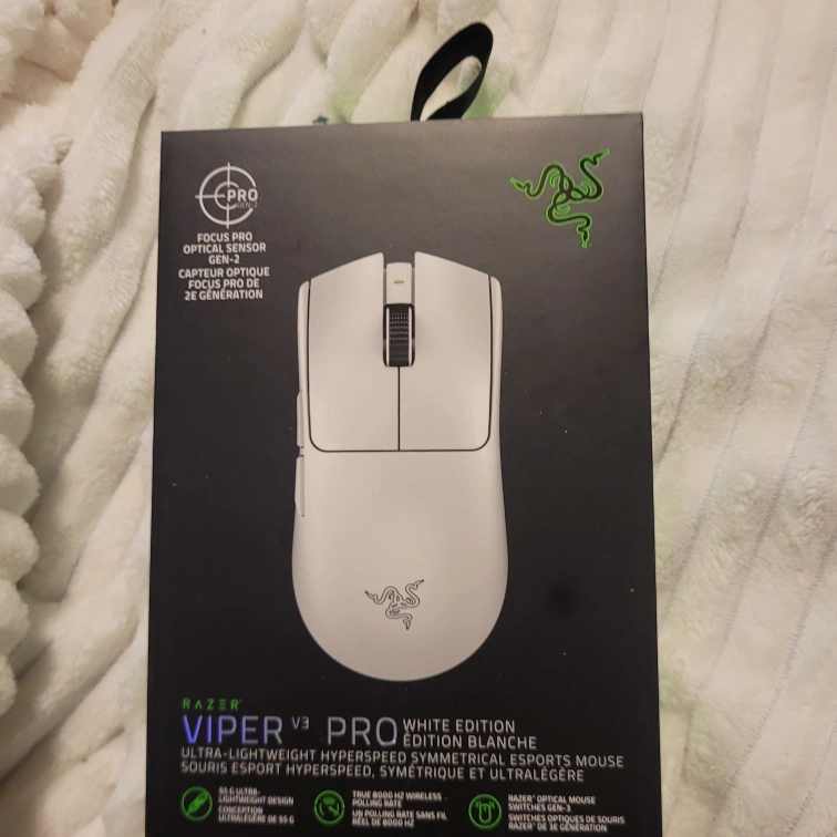 Selling a brand new Razer Viper V3 Pro White Edition ultra-lightweight hyperspeed symmetrical esports mouse! It features Razer's Focus Pro optical sensor Gen-2 and optical mouse switches Gen-3. The mouse has up to 95 hours of battery life and a true 8000 Hz wireless polling rate. It's incredibly lightweight at just 55g. Comes with the box and all original components!