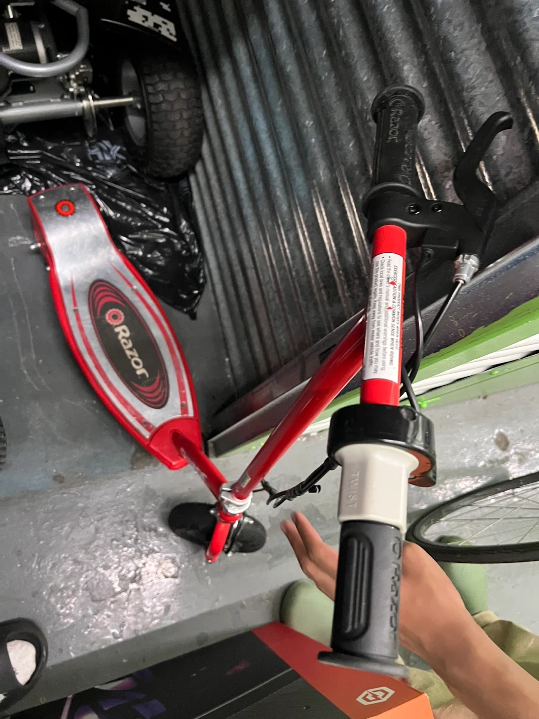Selling a Razor E100 electric scooter in red! It has a max speed of 10 mph and can run for up to 40 minutes. Recommended for ages 8 and up, with a max weight of 120 lbs