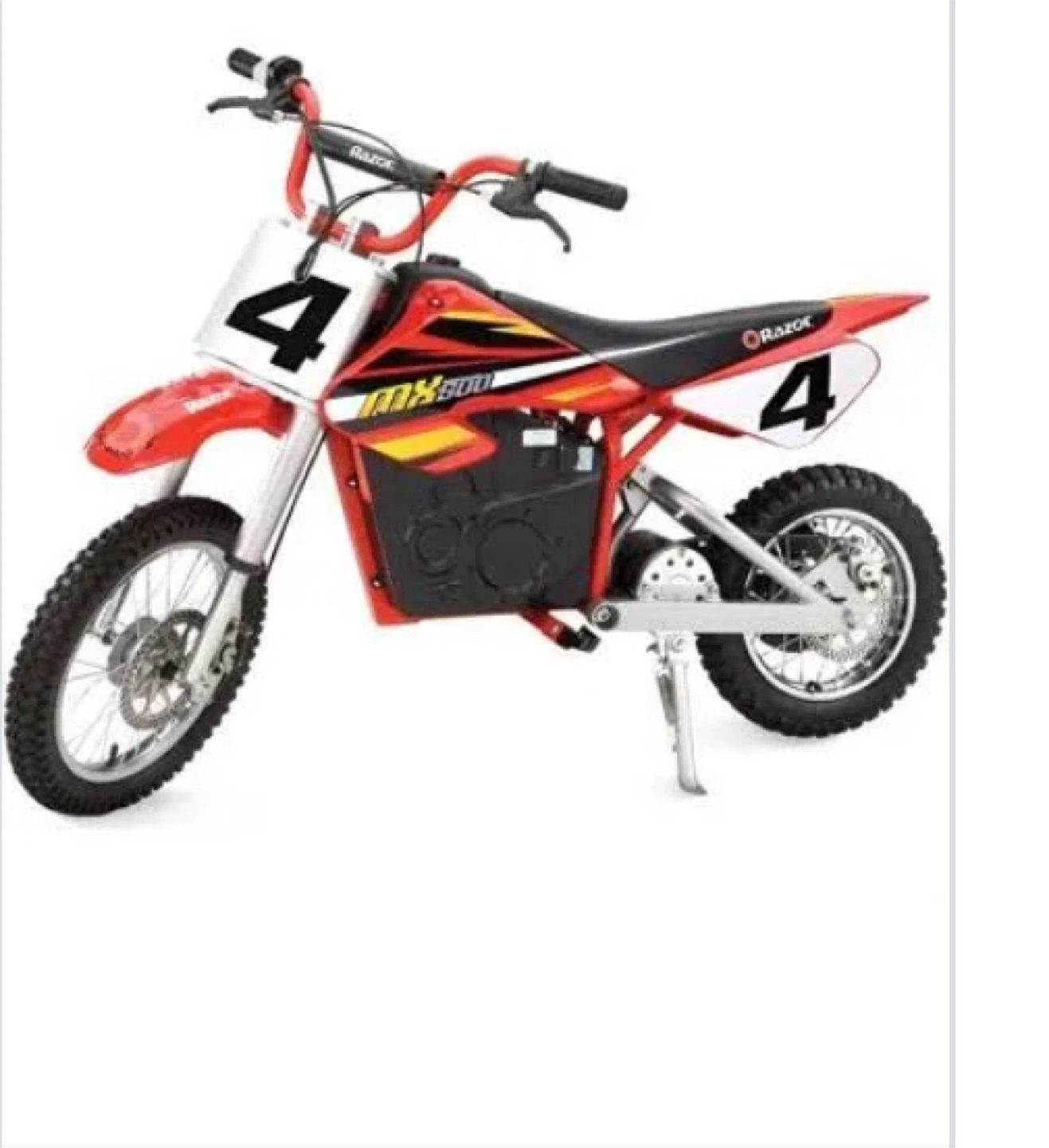 13Selling a Razor MX650 electric dirt bike in red. It's in great condition and ready for some off-road fun!