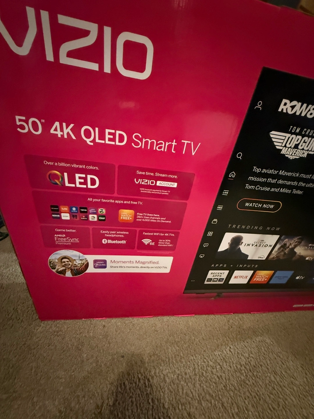 50 inch screen, Quantum Pro technology. Smart TV with access to popular streaming apps. Features FreeSync and Bluetooth. New, unopened box.