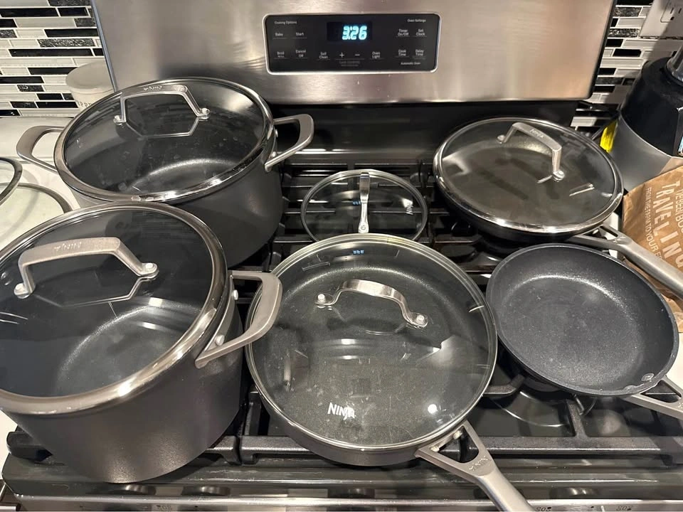 Moving sale! Selling a large Ninja Foodi NeverStick cookware collection (20 pieces total). Some pieces are lightly used and several are brand new. These are Ninja’s premium NeverStick pans, designed to handle very high heat without sticking, chipping, or flaking. Dishwasher safe and extremely durable. Includes: 2.5 qt saucepan with lid, 1.5 qt saucepan with lid, 5 qt sauté pan with lid, 3 qt sauté pan with lid, (2) 10.25” frying pans, (2) 8” frying pans, (2) 6.5 qt stock pots with lids, 8 qt stock pot with lid. 20 pieces total. Great full kitchen setup or upgrade. $350 or best reasonable offer.