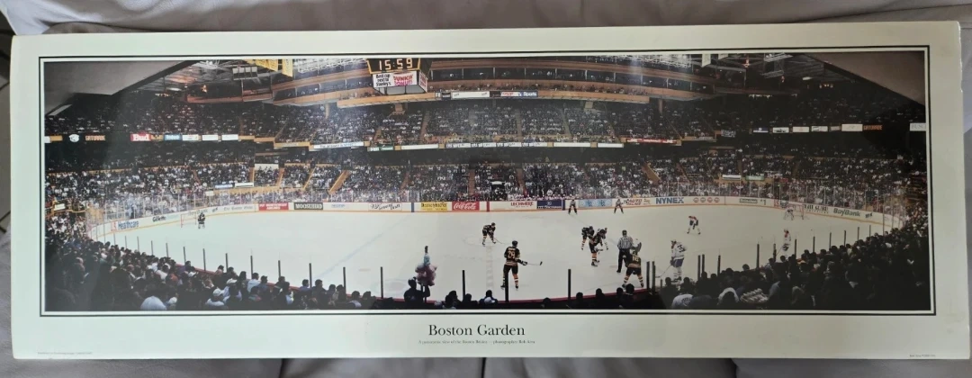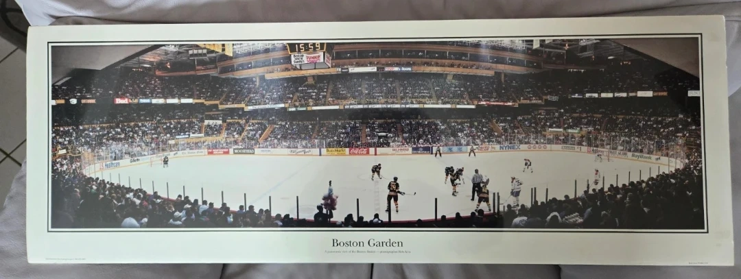 Panoramic photo of Boston Garden game time action between Boston Bruins and Montreal Canadiens. 13.5"Γ39" unframed.
