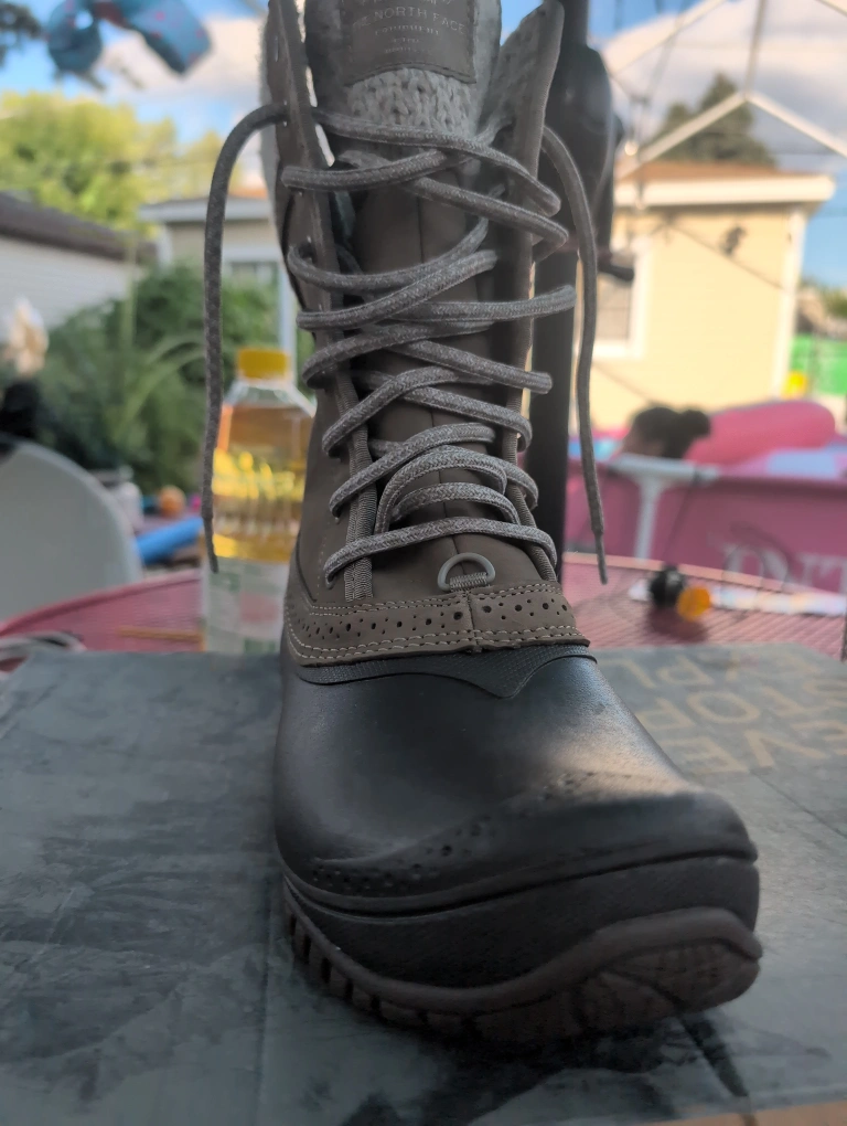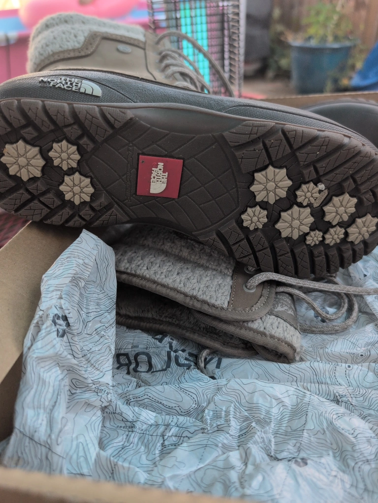 Selling a pair of The North Face Shellista II Mid women's boots in US size 9. The color is a stylish split rock brown/dove grey. They come with the original box. These boots are perfect for keeping your feet warm and dry in colder weather!