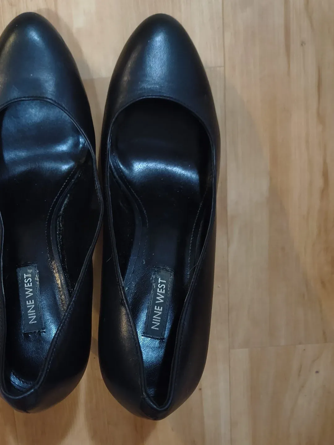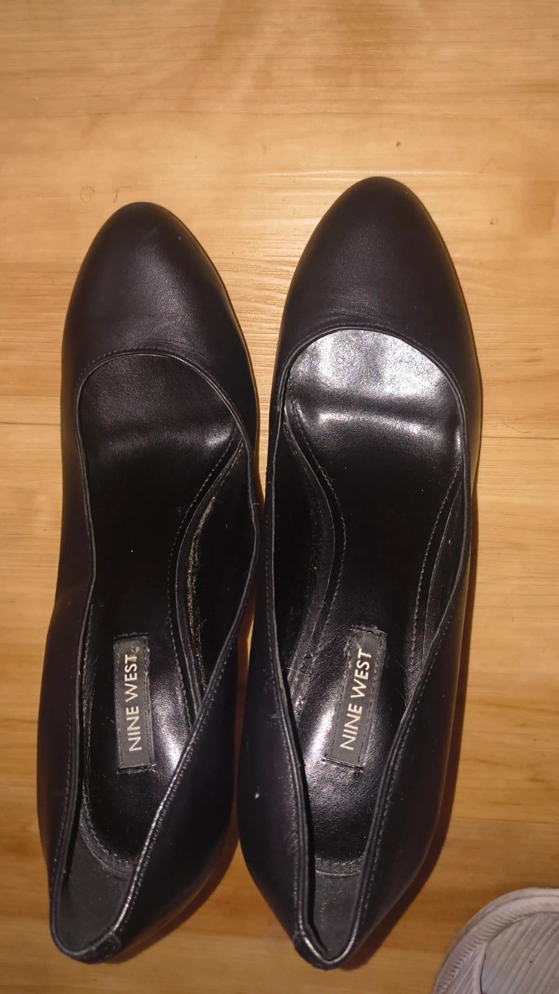Classic black leather heels from Nine West. These shoes are made of leather and feature a pointed toe. They're perfect for dressing up any outfit!