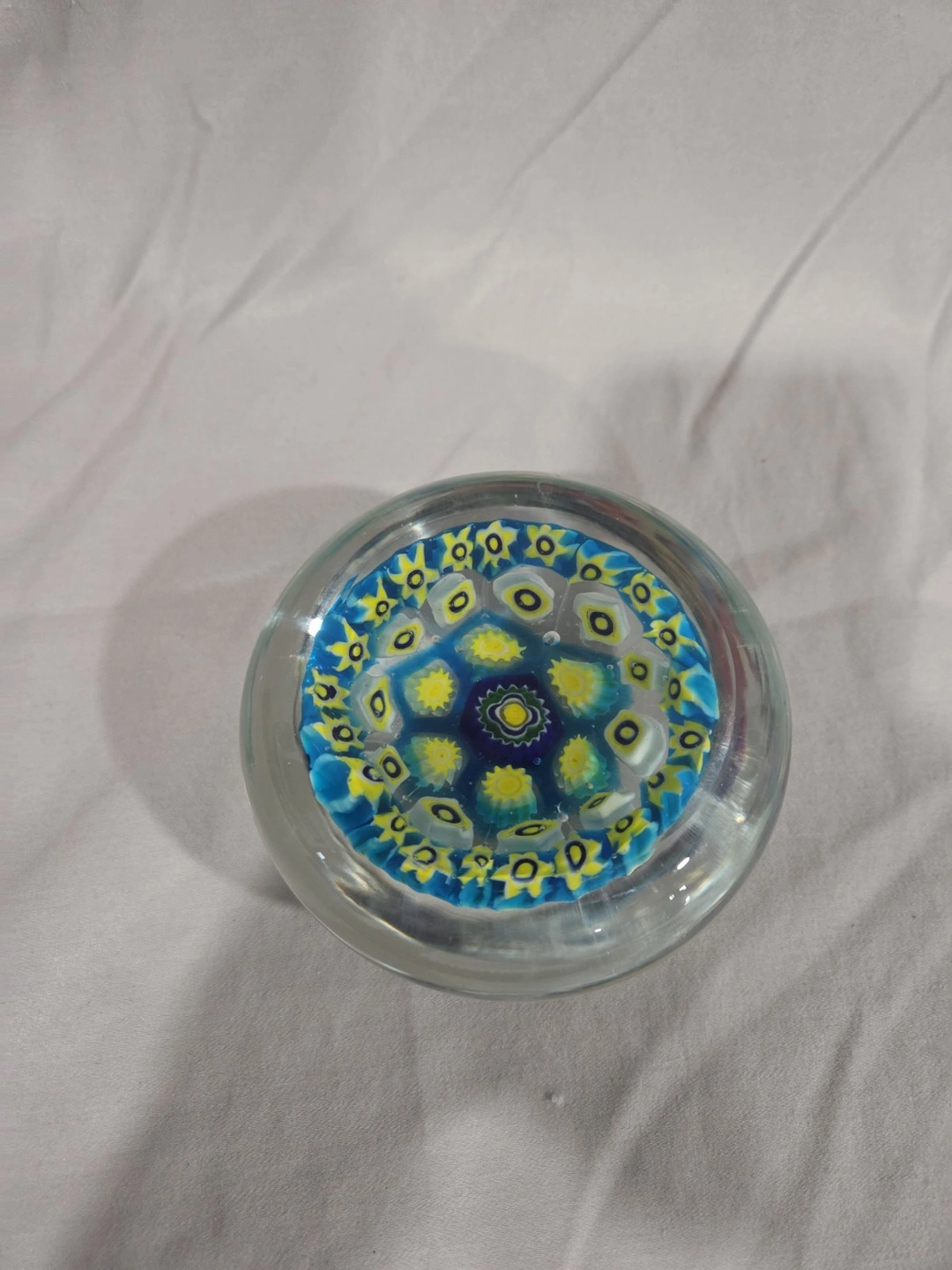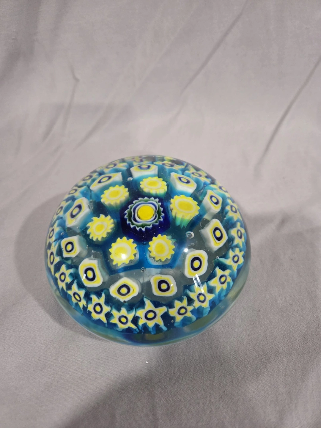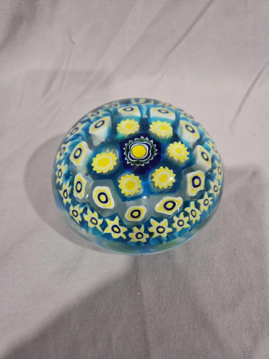 Beautiful vintage Murano glass paperweight from Italy. Features a lovely floral Millefiori pattern. This is a decorative art glass piece, handmade with a glossy finish. Era: Late 20th Century (1970-1999). Let me know if you're interested!
