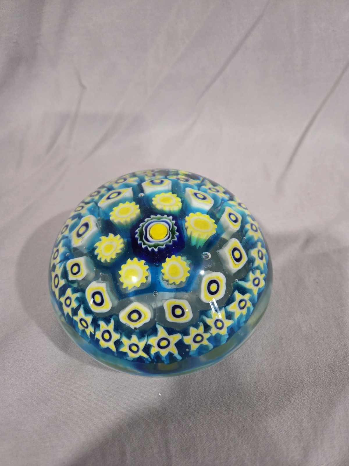 Beautiful vintage Murano glass paperweight from Italy. Features a lovely floral Millefiori pattern. This is a decorative art glass piece, handmade with a glossy finish. Era: Late 20th Century (1970-1999). Let me know if you're interested!