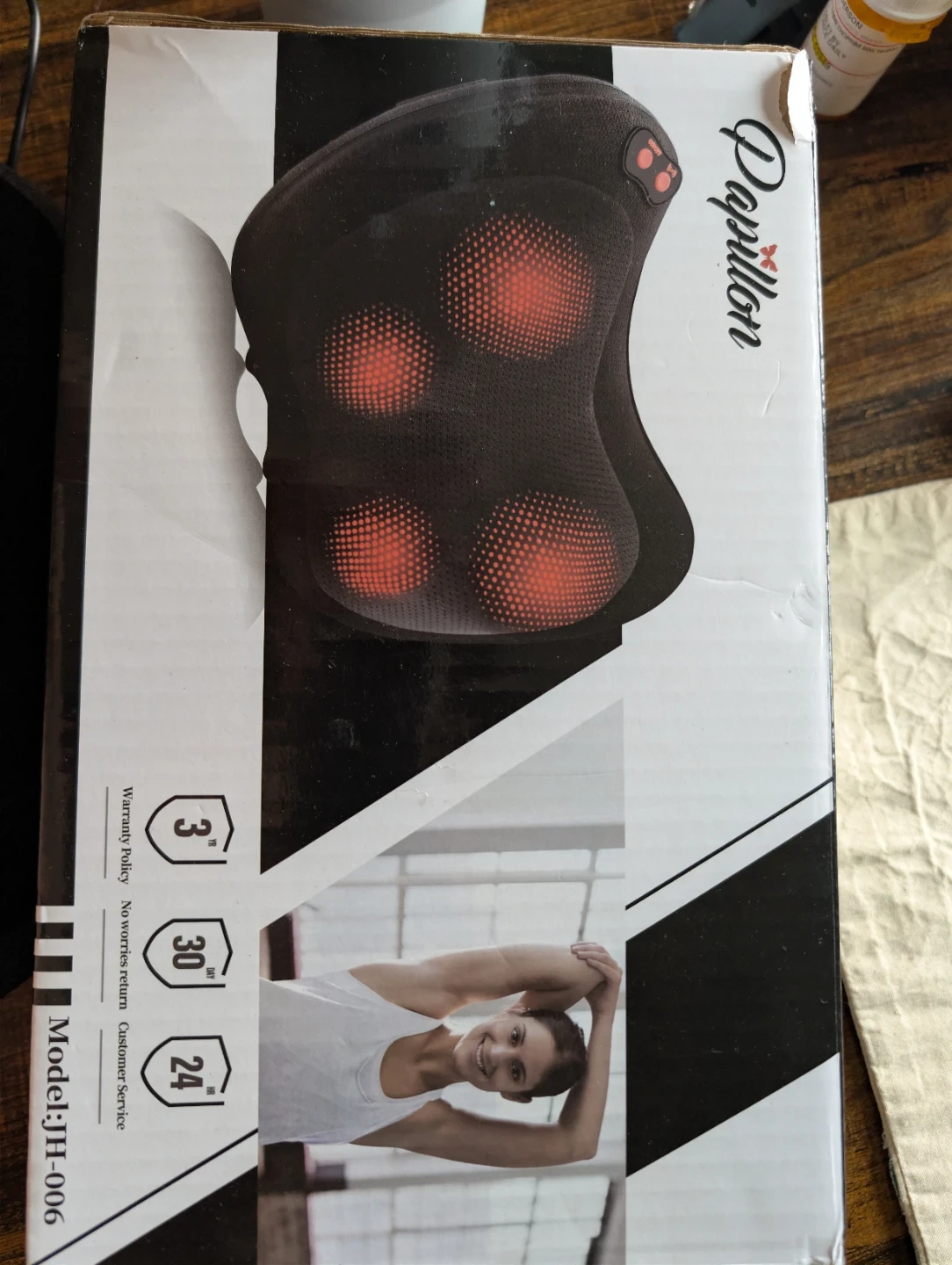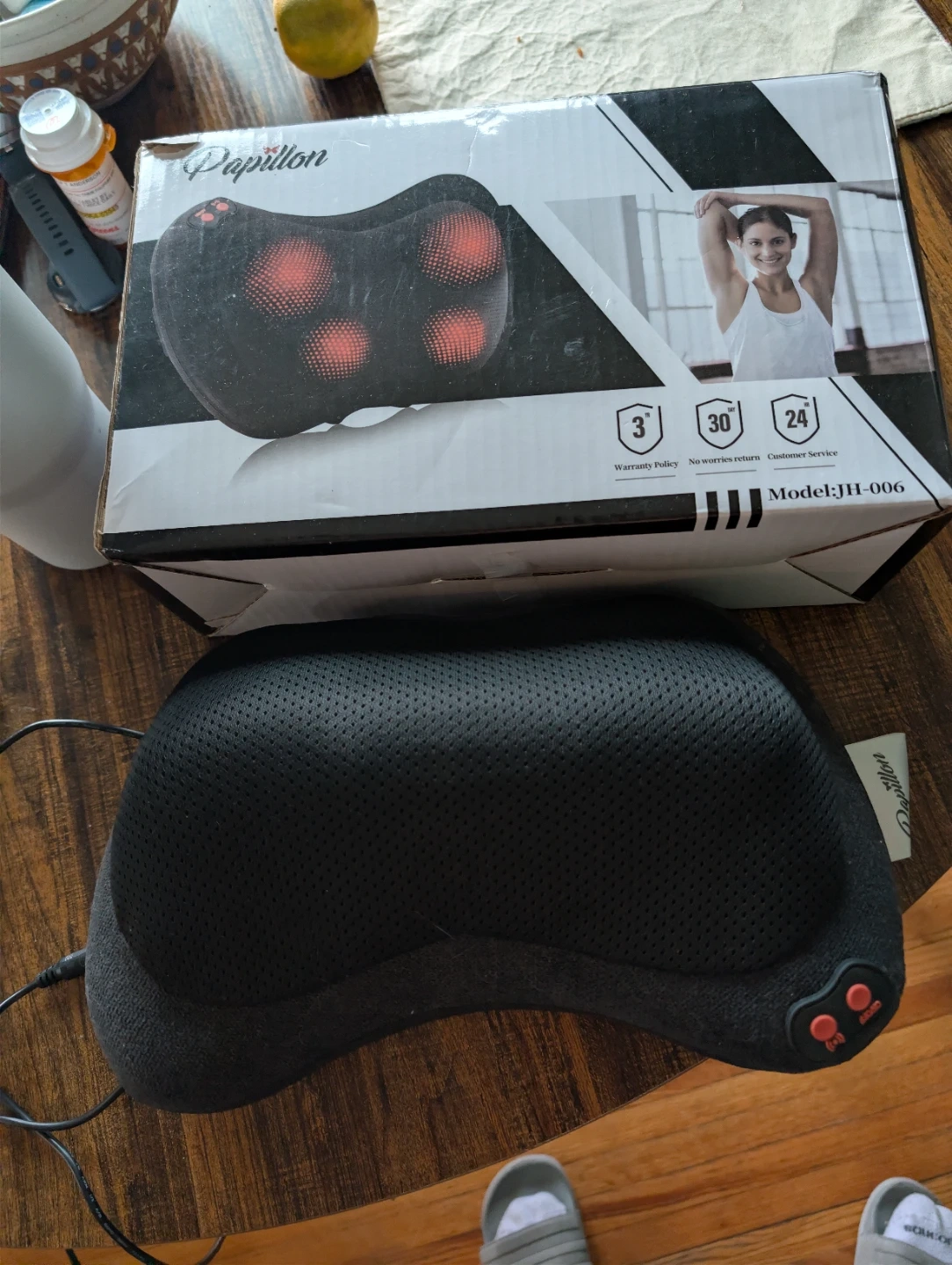 This is a Papillon Shiatsu massage pillow with heating function. It's designed for neck and shoulder relief. Model JH-006.