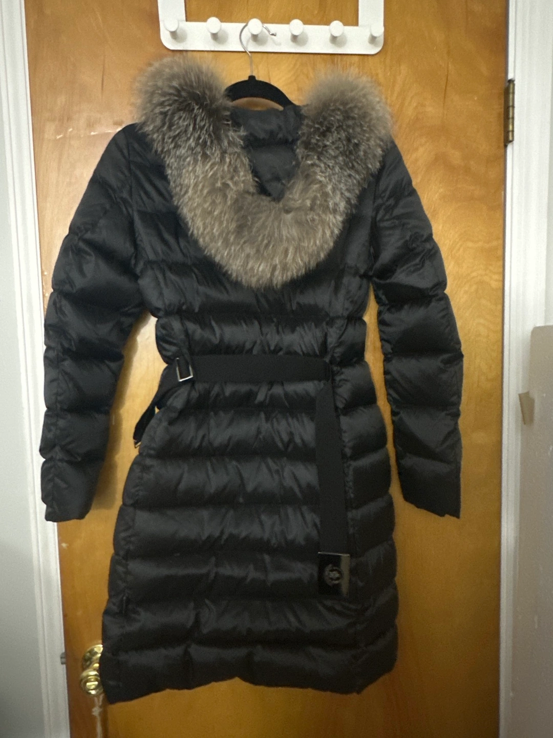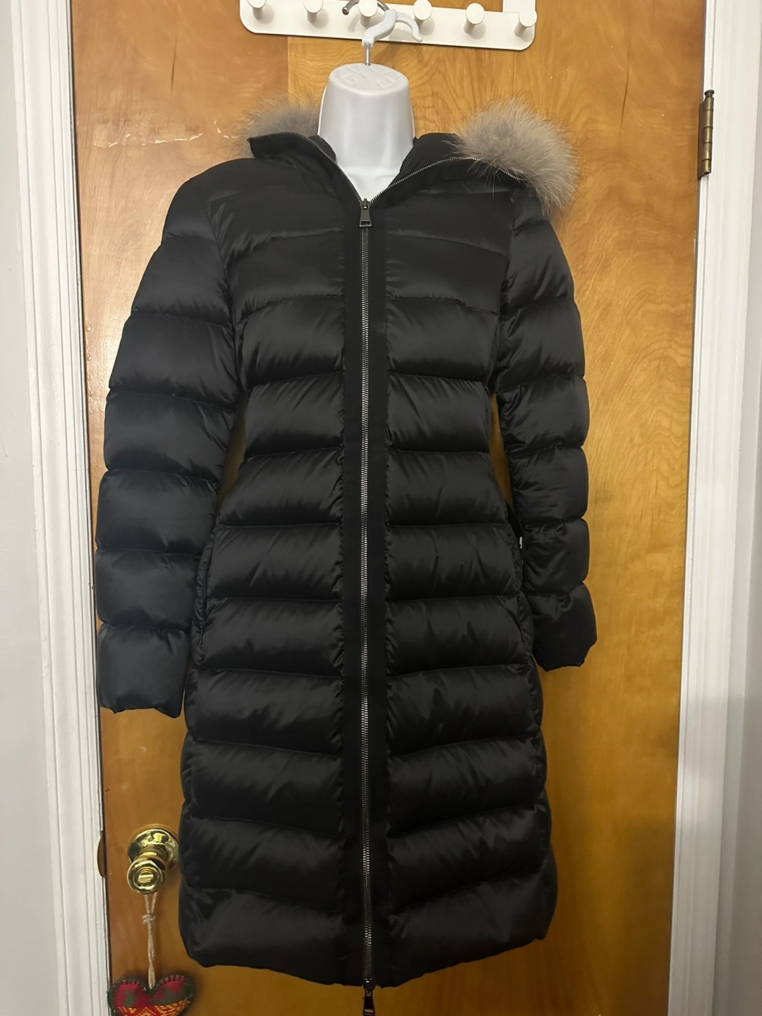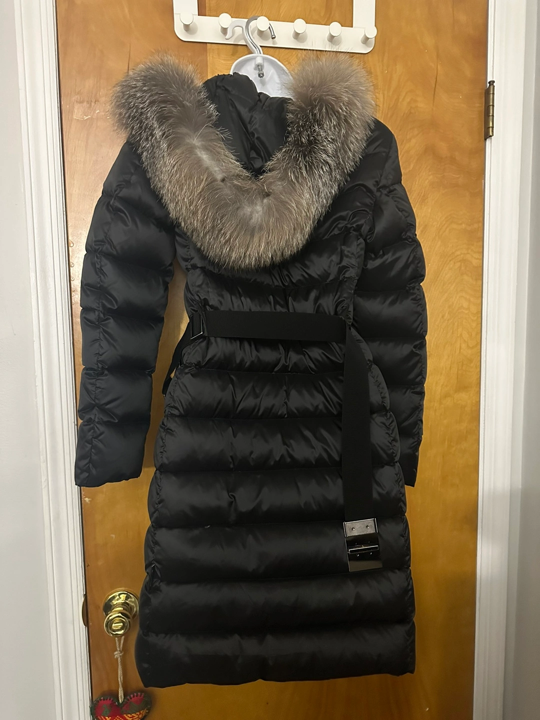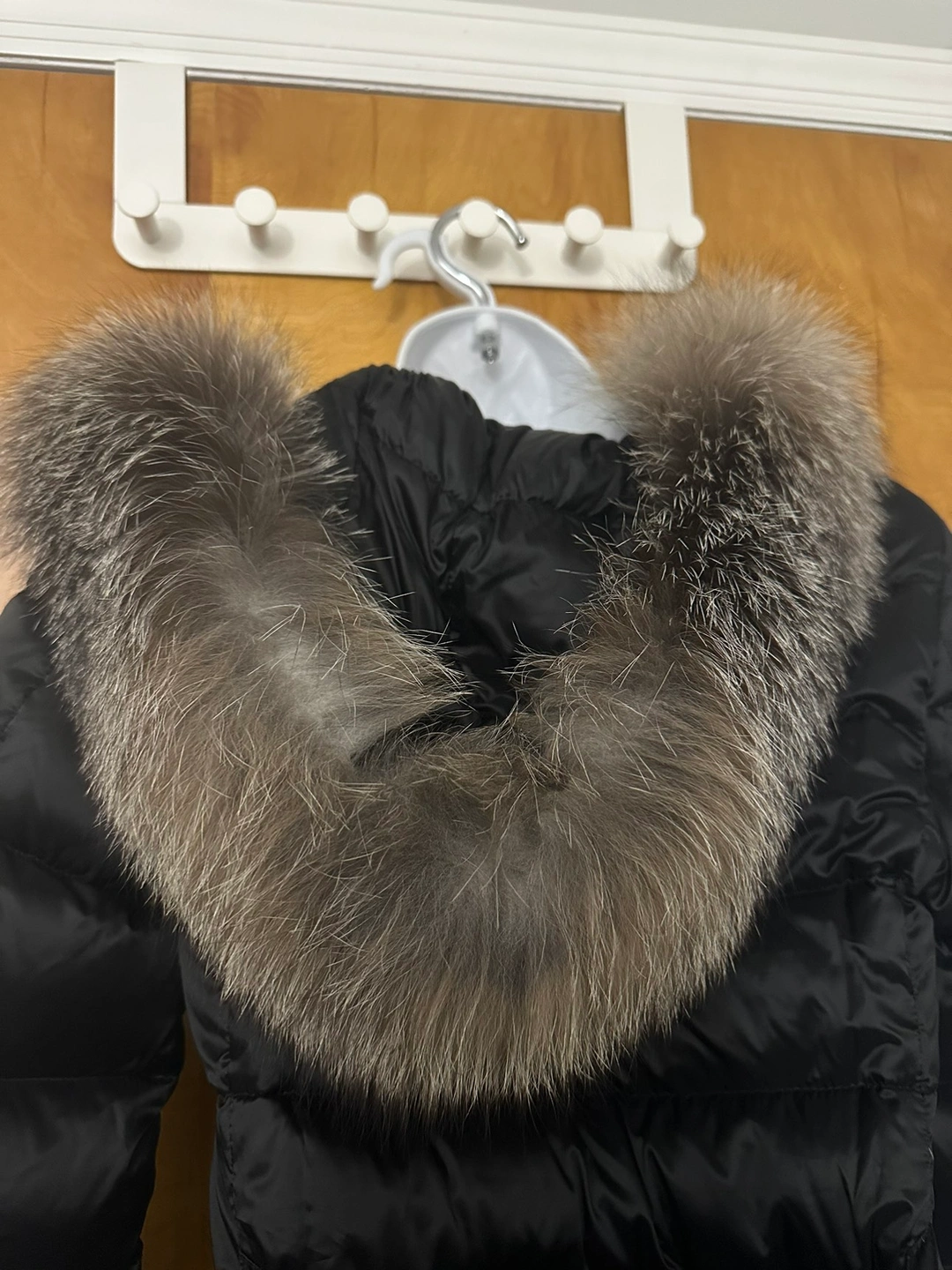 Hooded neckline with dyed fox fur (Finland) lining.