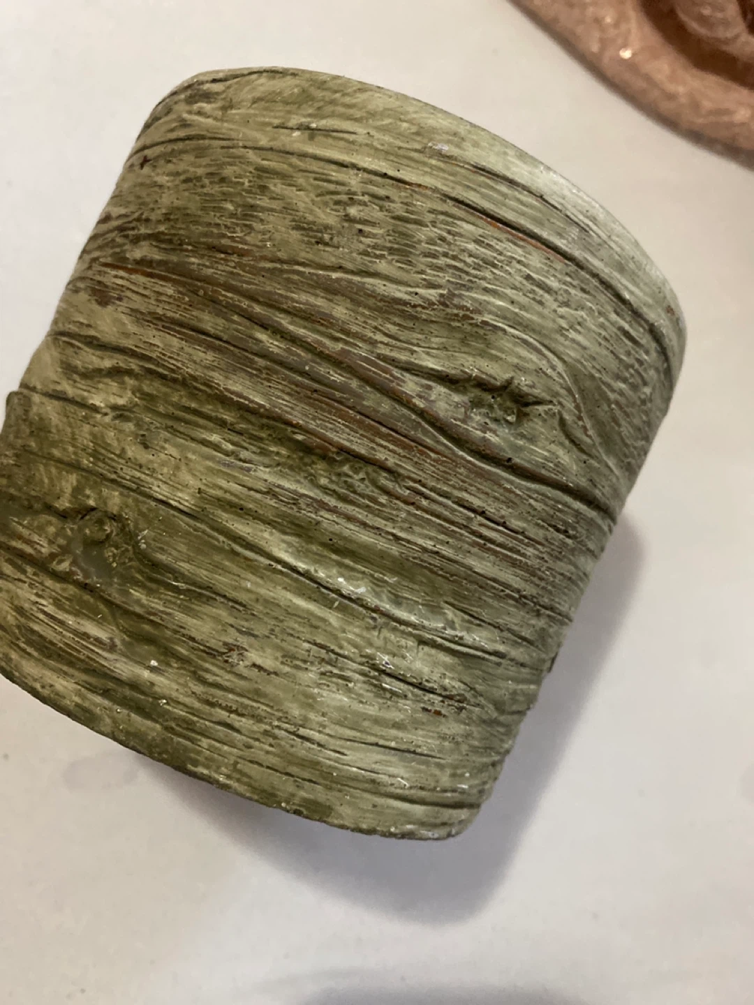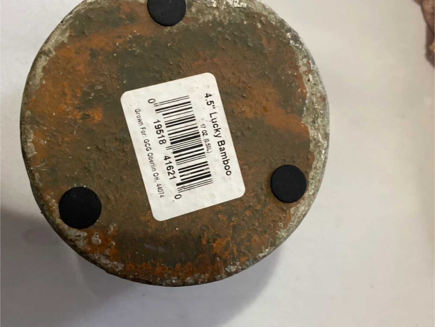 This is a 4.5 inch Lucky Bamboo planter pot. It holds 17 oz (0.50L). The pot has a textured exterior resembling wood grain. It's made of ceramic material. This planter is great for small plants!