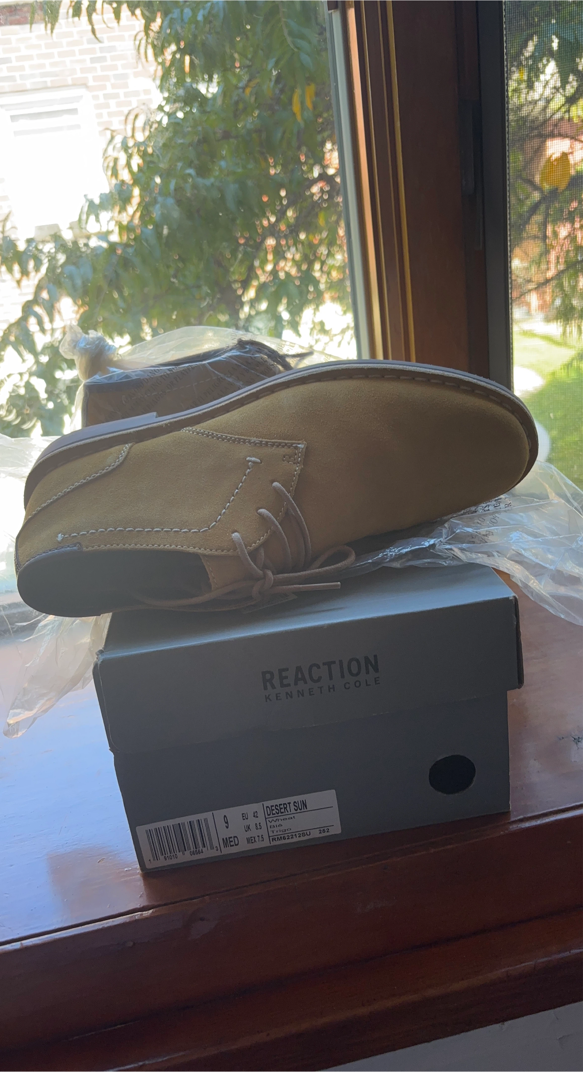 Selling a pair of Reaction Kenneth Cole Desert Sun shoes in size 9! They come with the original box. The color is wheat.