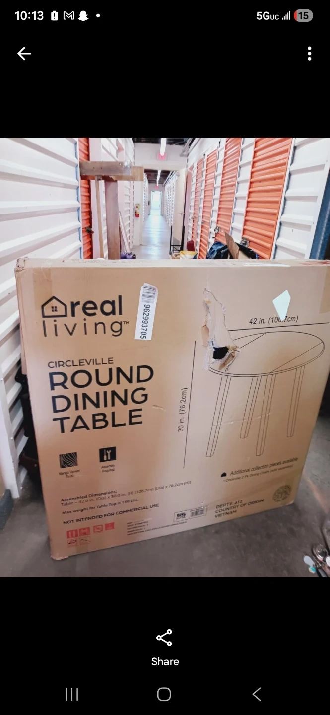 10Selling a Real Living Circleville Round Dining Table! The assembled dimensions are 42 inches in diameter and 30 inches in height. The table has a mango veneer finish. Assembly is required.