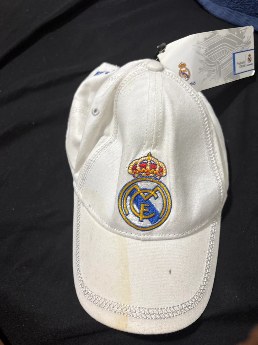 65Selling a Real Madrid baseball cap in white, junior size. It has the Real Madrid logo on the front. Please see the pictures for the condition