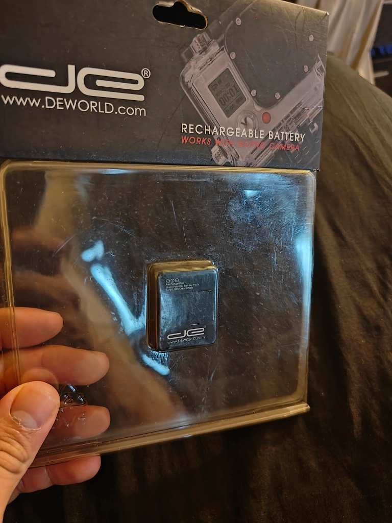 Selling a DEWORLD rechargeable battery that works with GoPro cameras! It comes in its original packaging. Perfect for keeping your GoPro powered up for all your adventures
