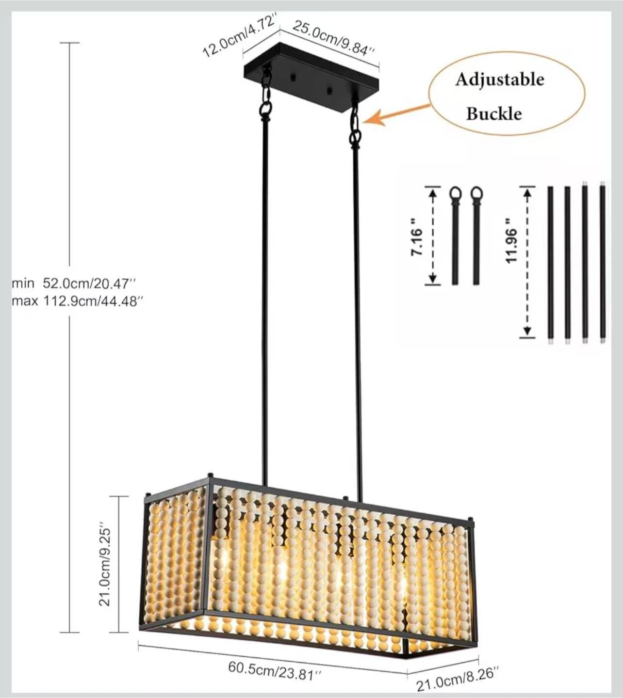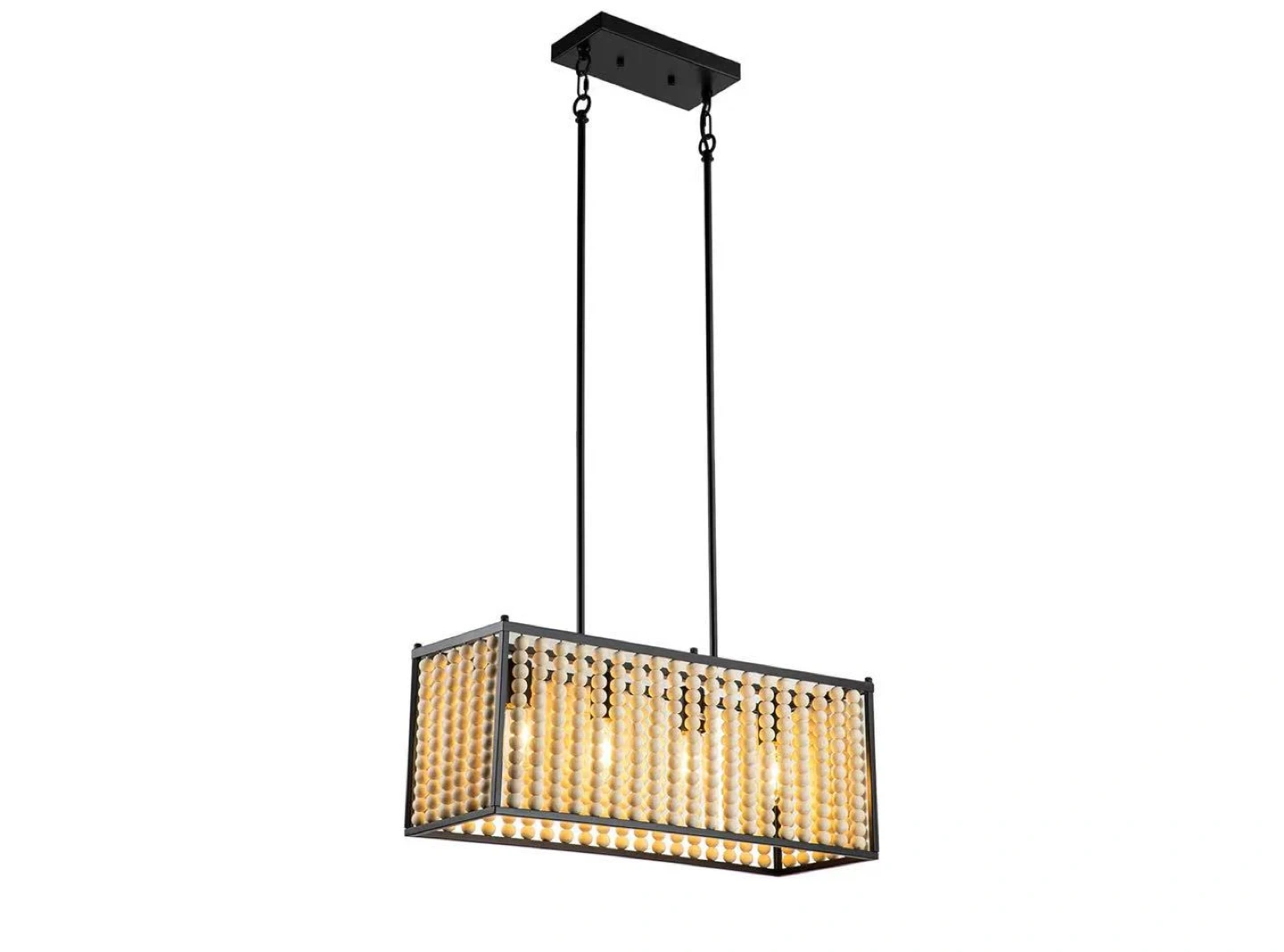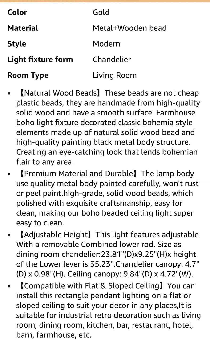 60Wood Beaded Chandelier, Boho Light Fixture Pendant Lamp Farmhouse Hanging Ceiling Light Fixture Ceiling Lamp Chandelier Farmhouse 4-Light Fixture Adjustable Height