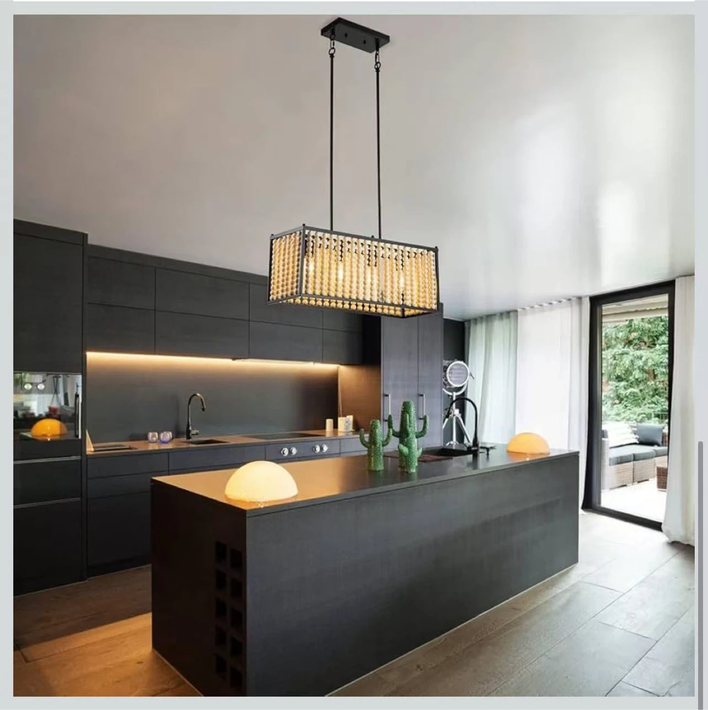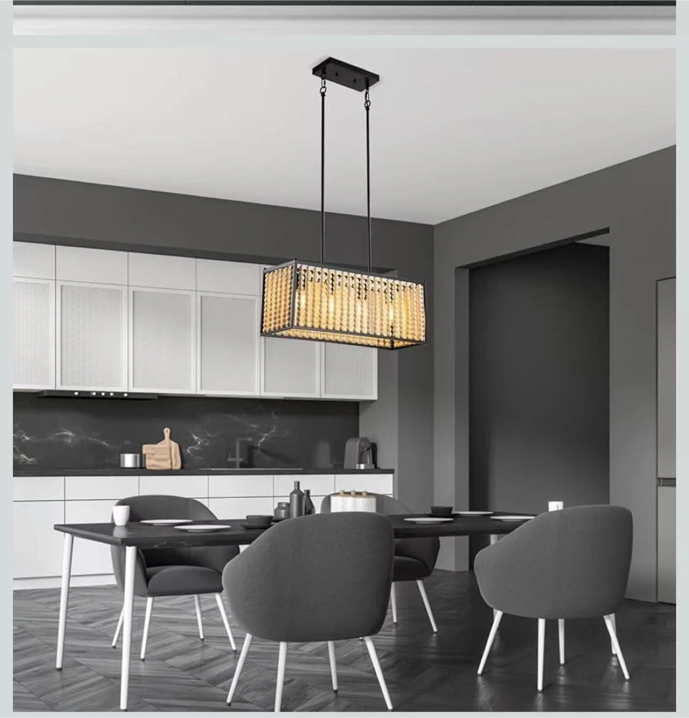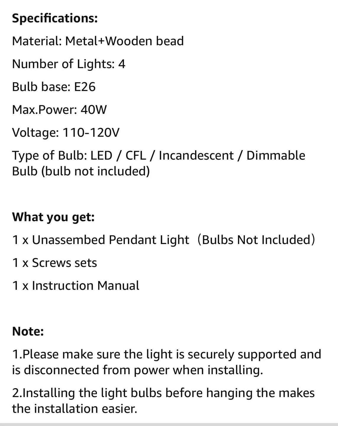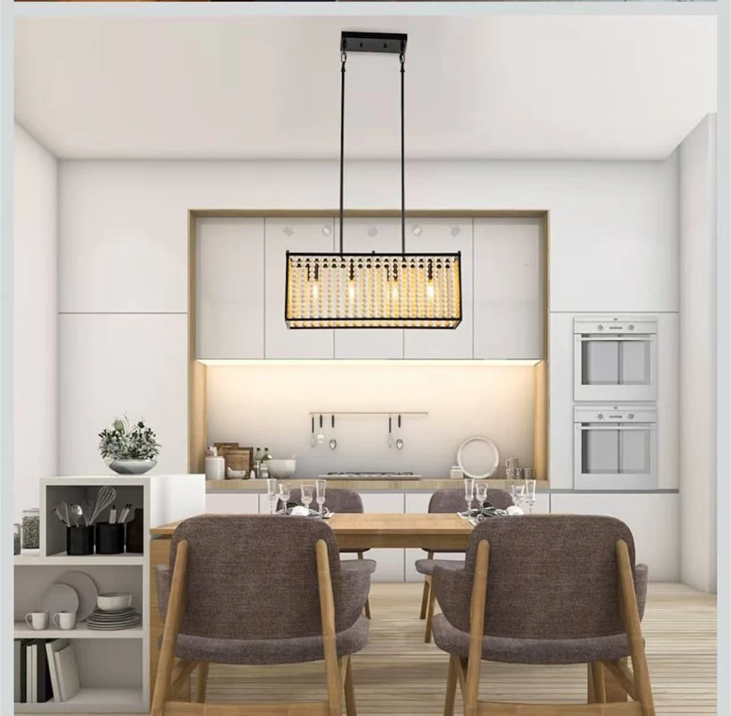 60Wood Beaded Chandelier, Boho Light Fixture Pendant Lamp Farmhouse Hanging Ceiling Light Fixture Ceiling Lamp Chandelier Farmhouse 4-Light Fixture Adjustable Height
