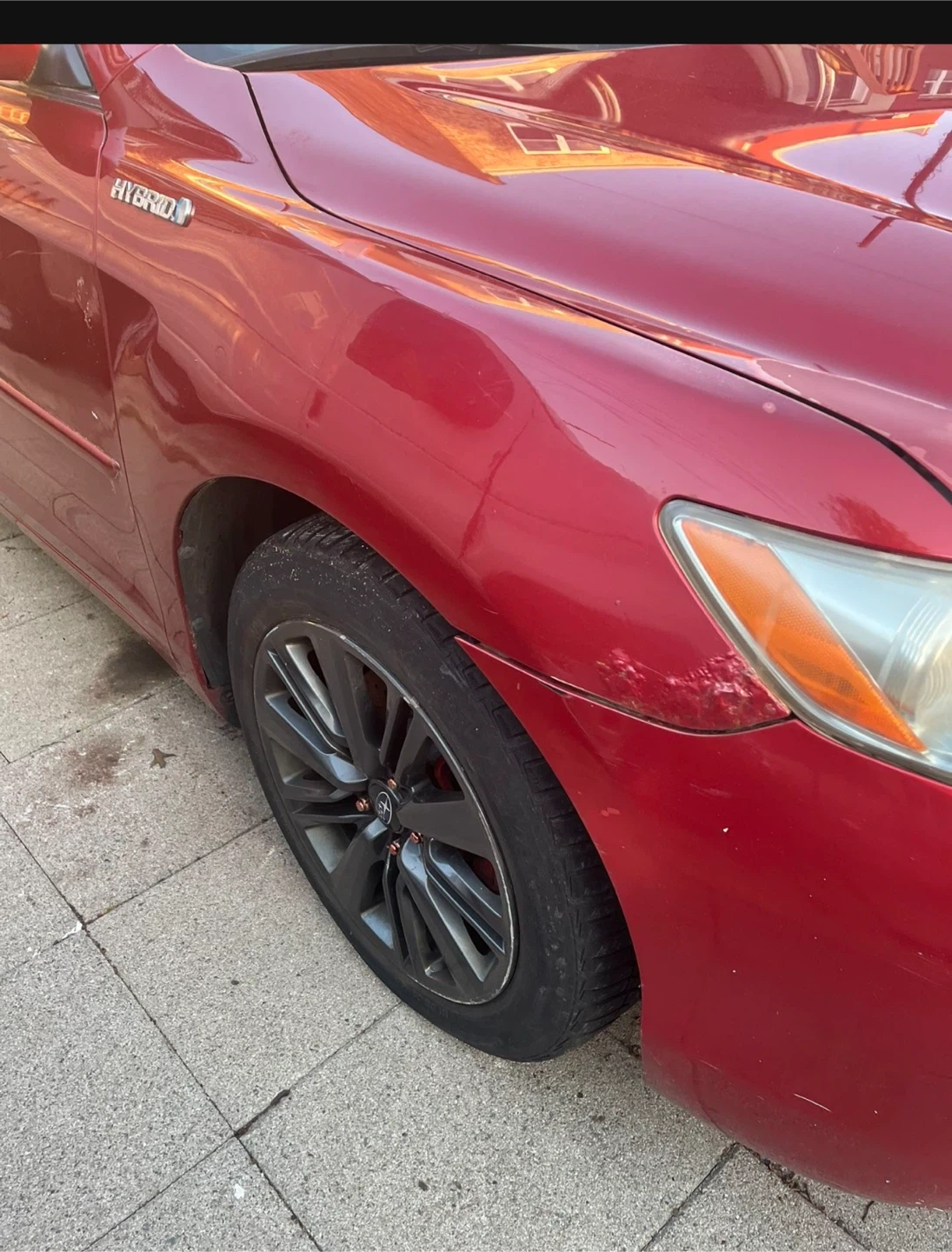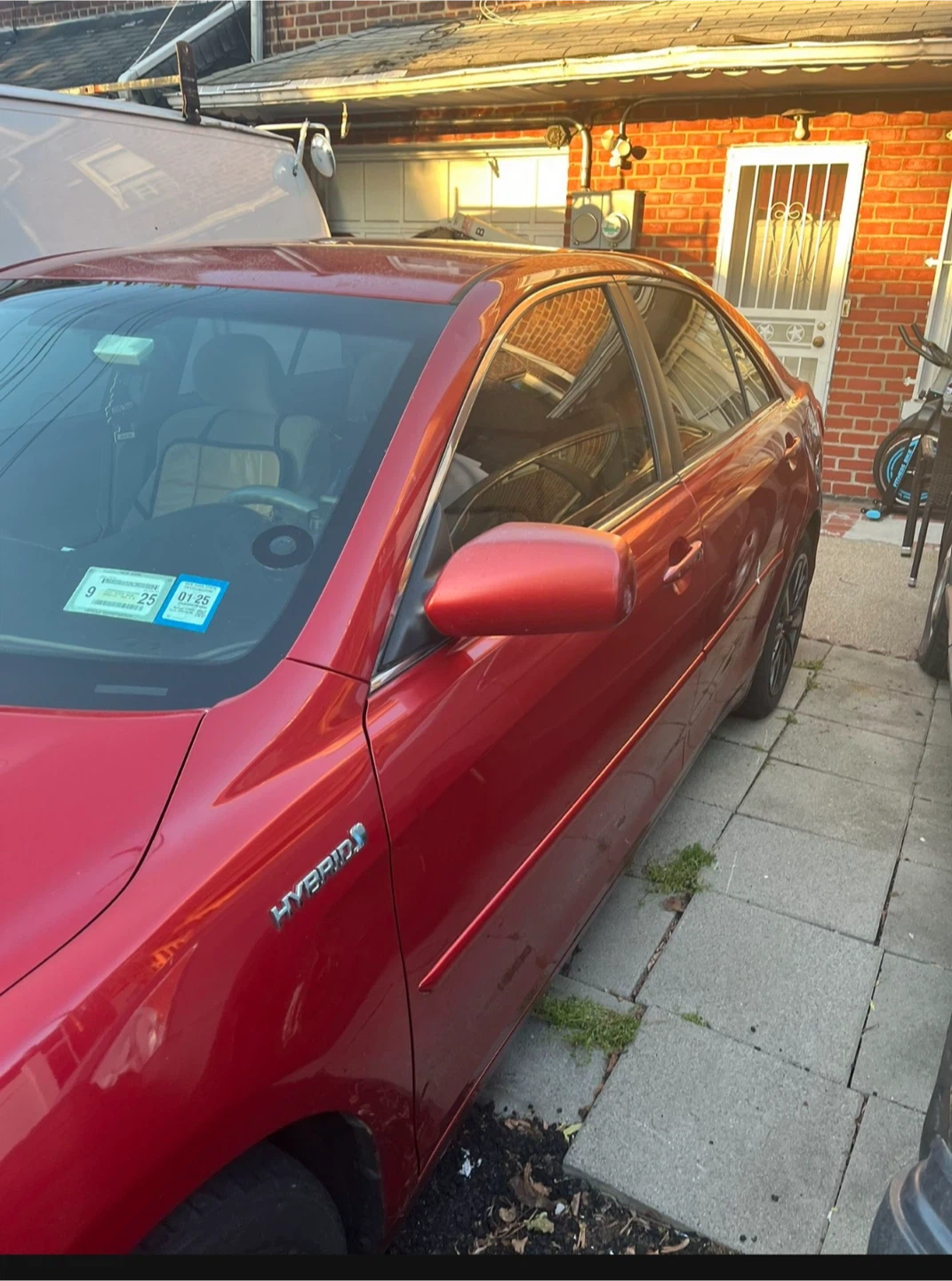 Selling a red 2007 Toyota Camry Hybrid sedan. It has some wear and tear, as you can see in the pictures. 224,430 Miles. Inspection until next year.