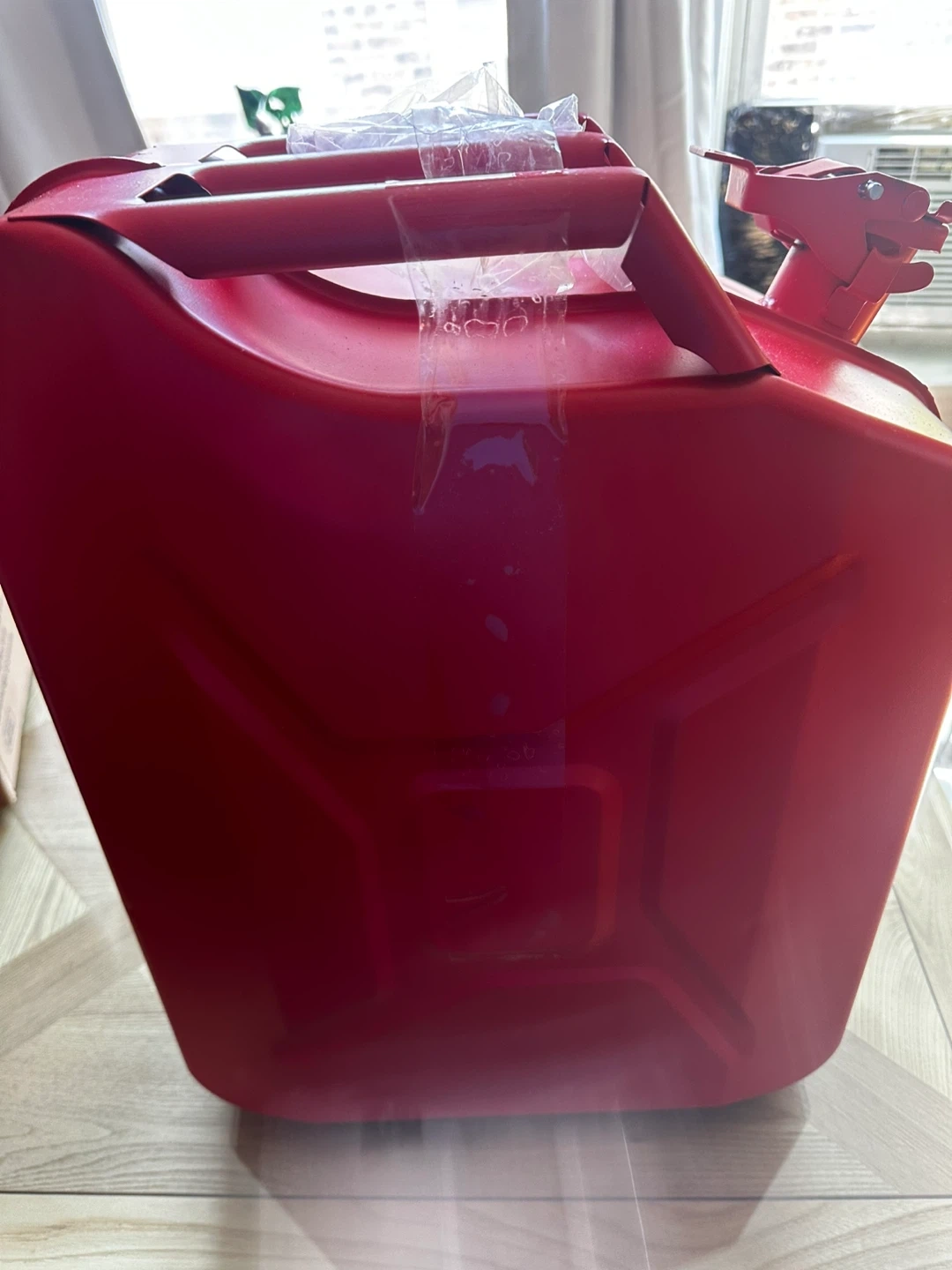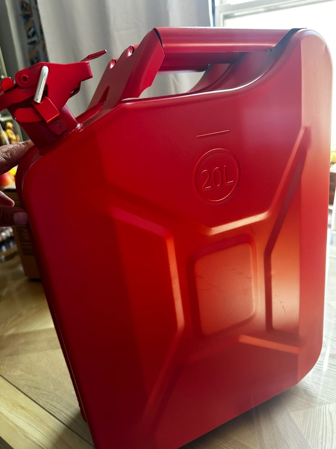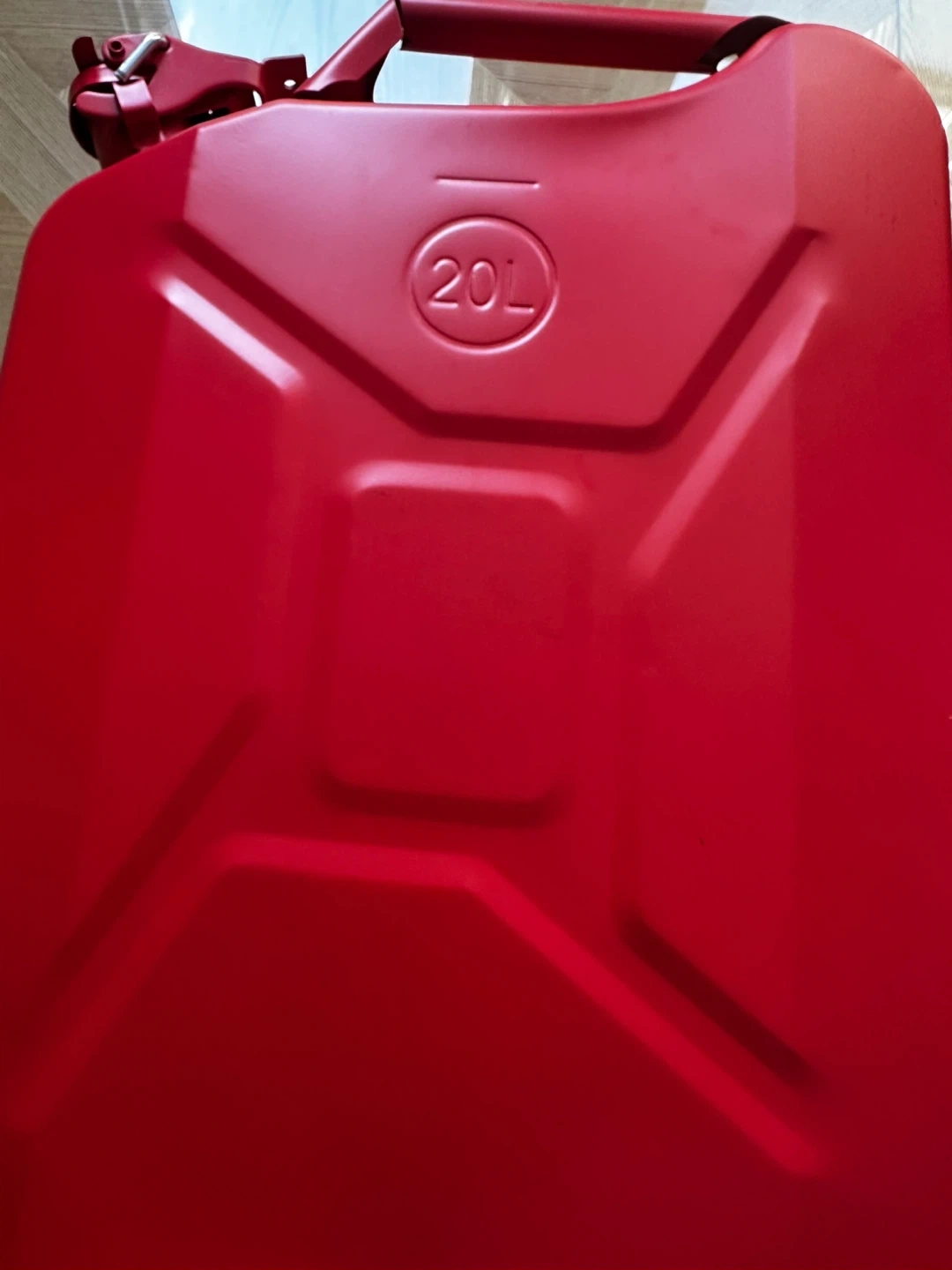 Selling a red jerry can that holds 20L. It is in good condition and comes with the spout attachment