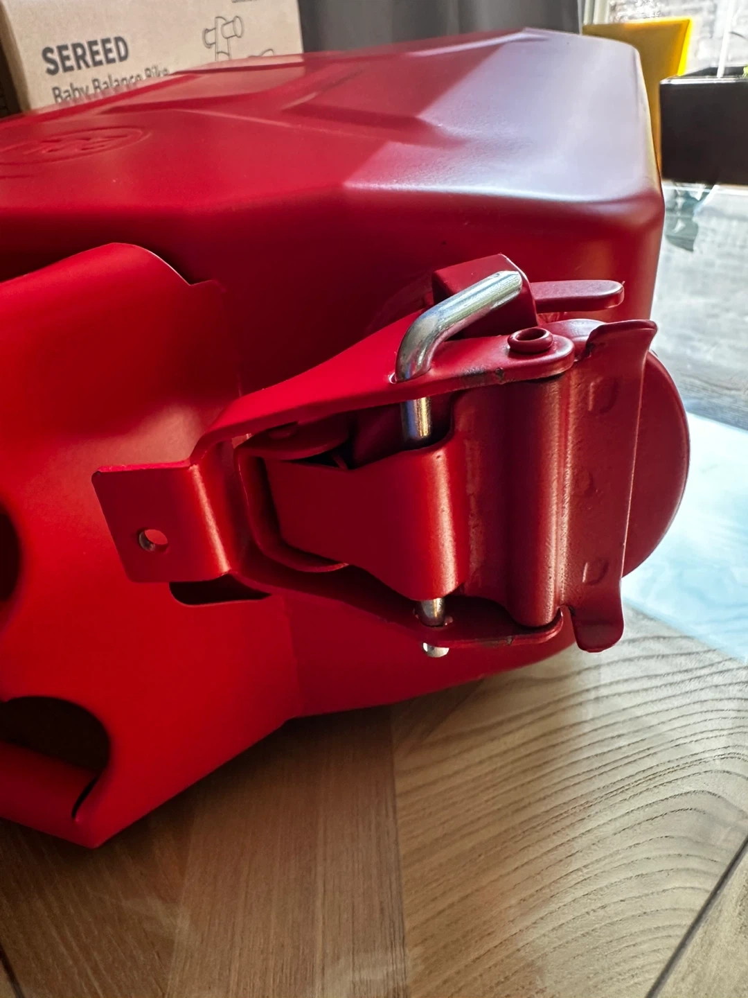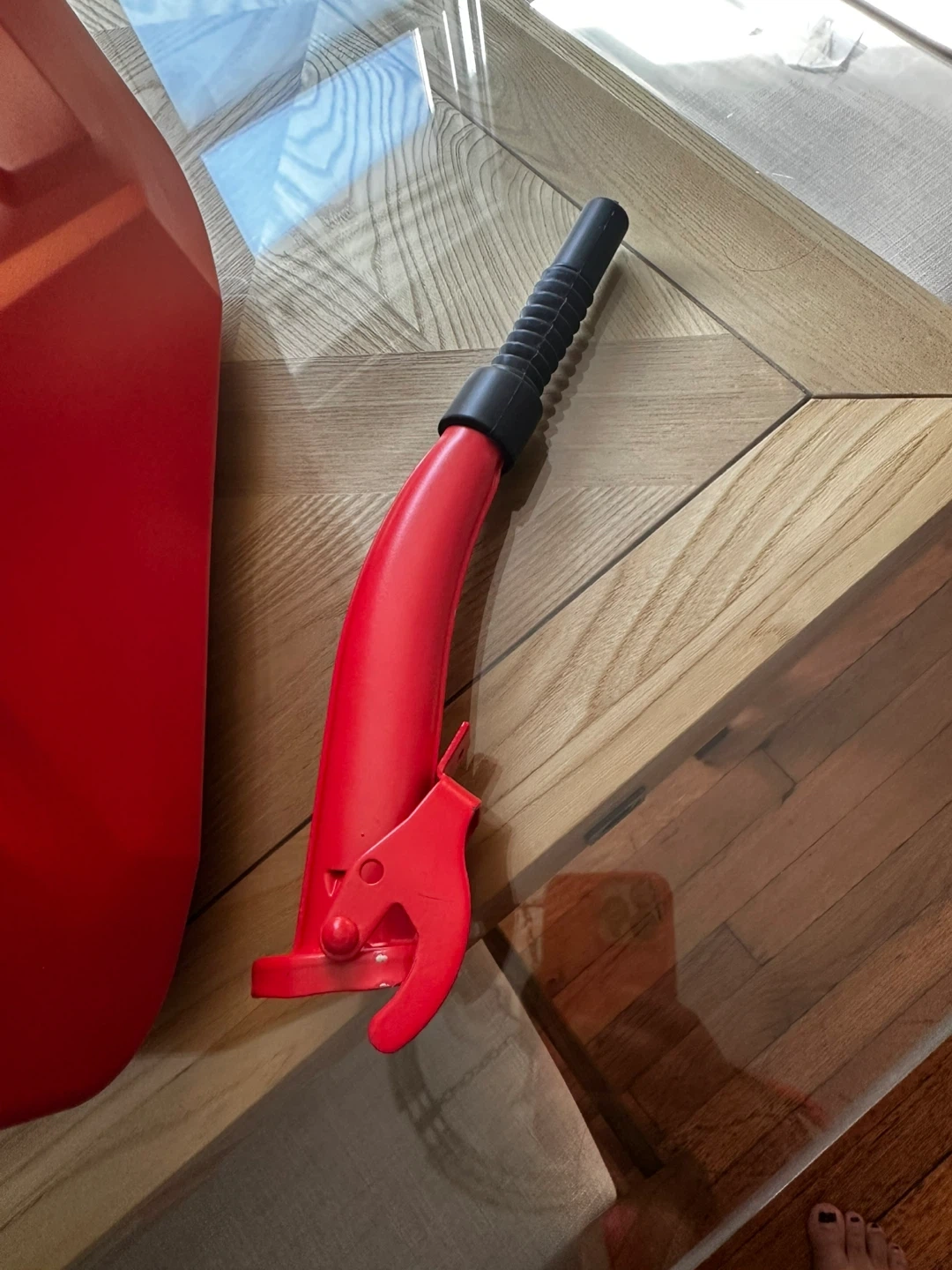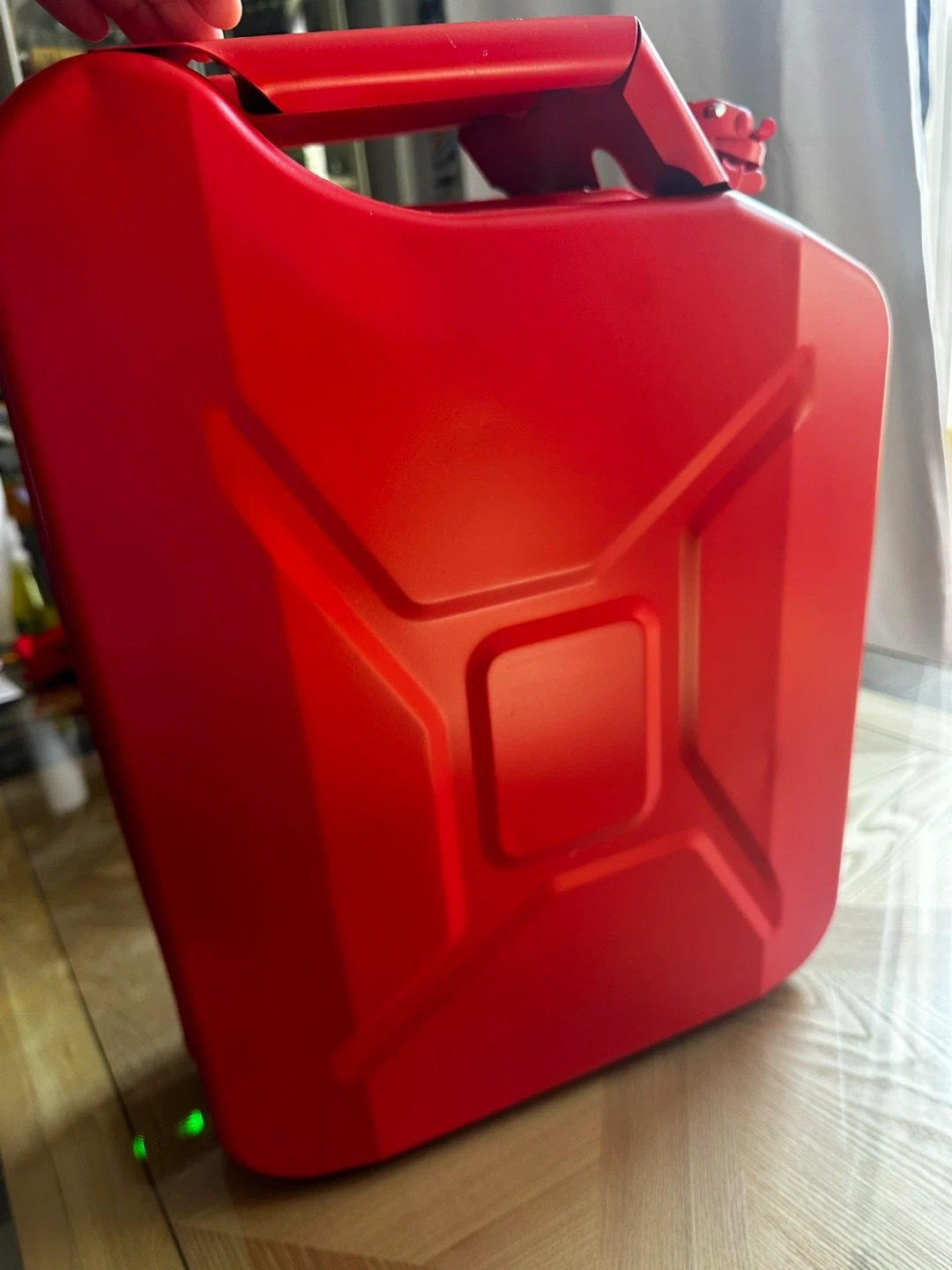 Selling a red jerry can that holds 20L. It is in good condition and comes with the spout attachment