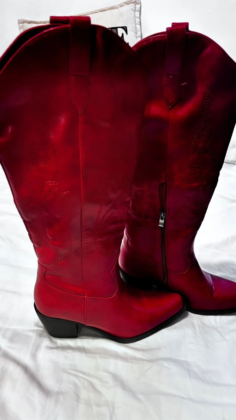 Selling a pair of red cowboy boots. They are in great condition and ready for a new home! Used only once! Perfect for adding a pop of color to any outfit.