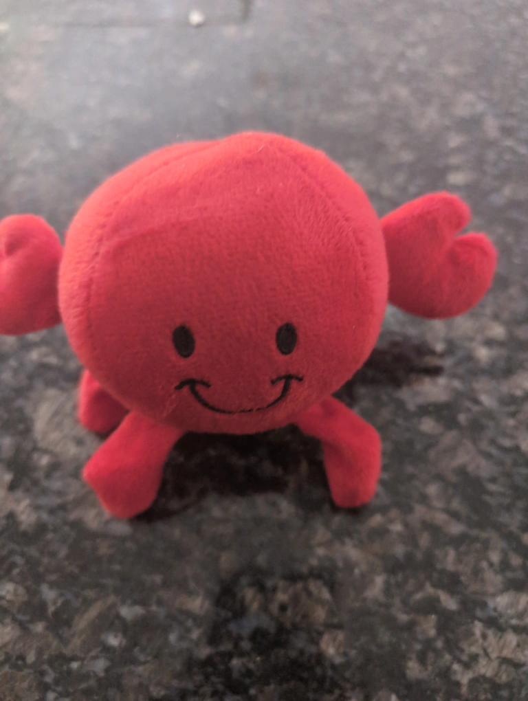 52Selling a cute red crab plush toy! It's in good condition and ready for a new home. Perfect for kids or anyone who loves sea creatures