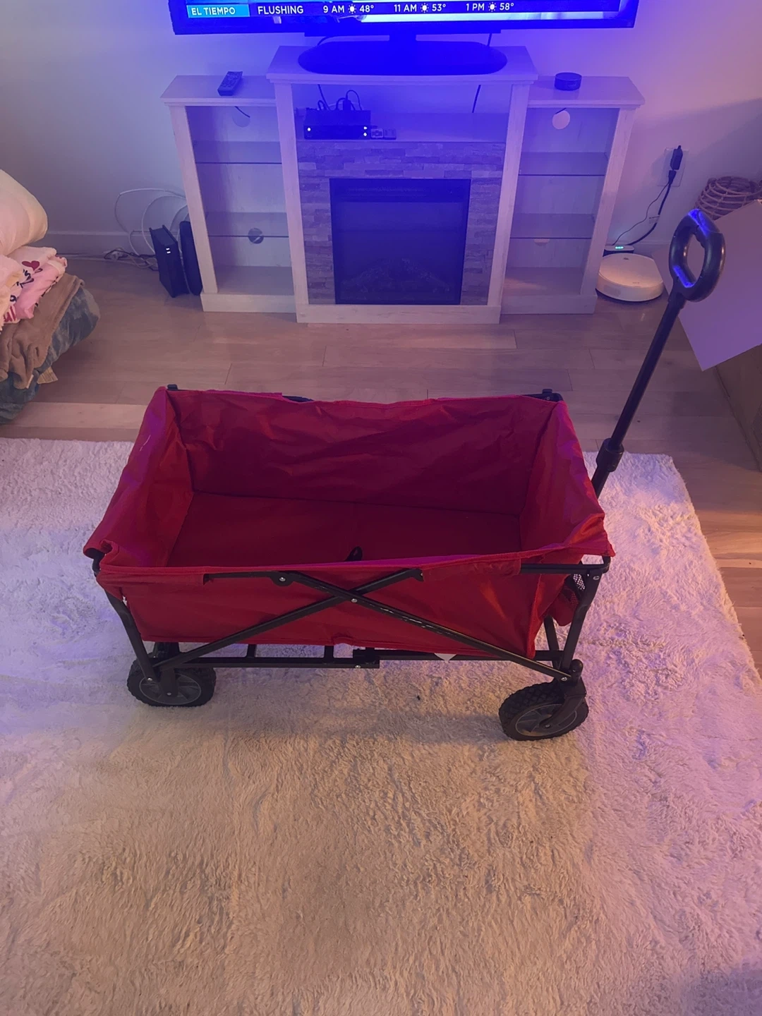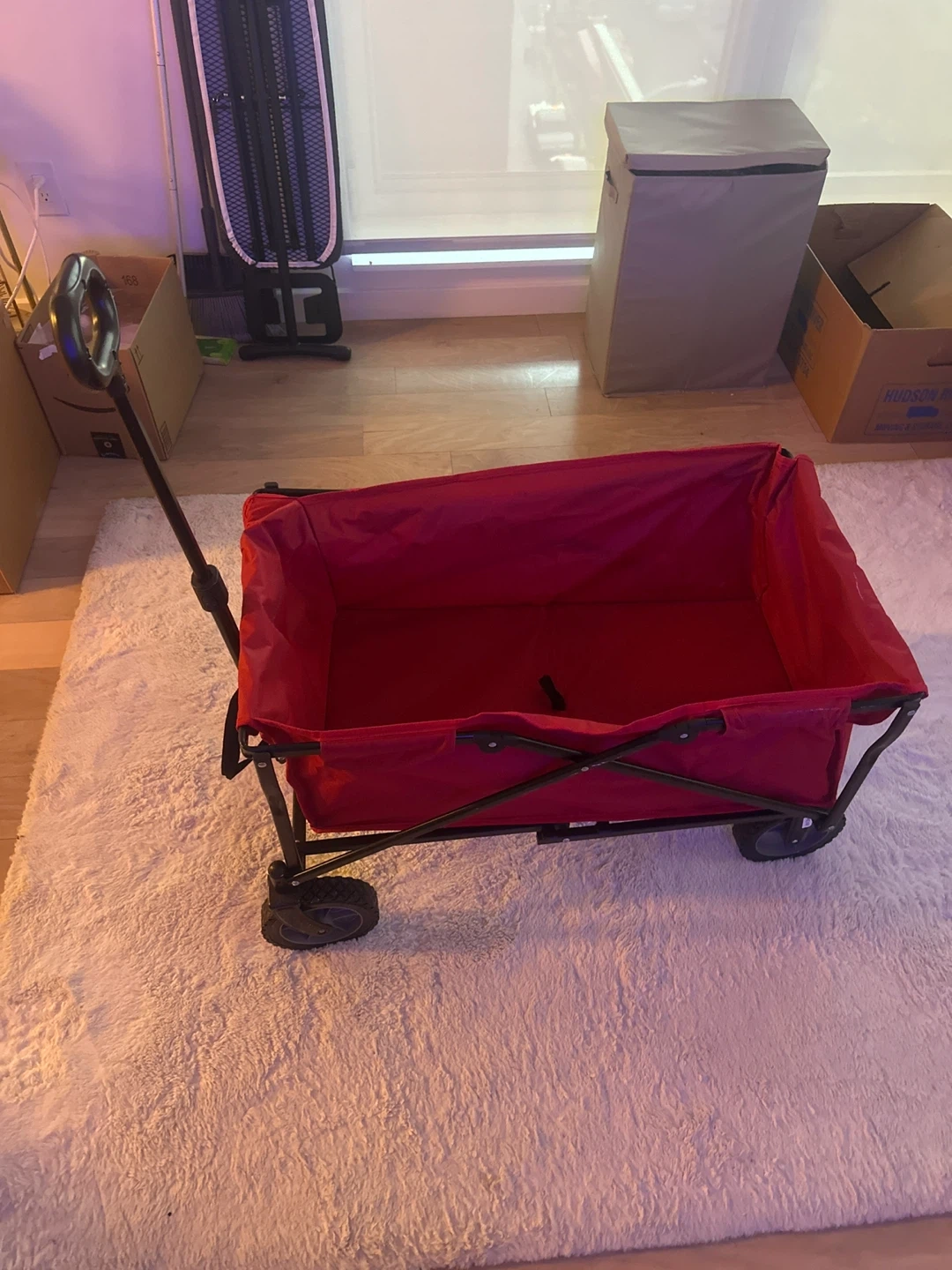 Selling a red folding wagon! It's in great condition and perfect for hauling things around. It's easy to fold up and store when not in use. Moving sale. Pick up please. Thank You