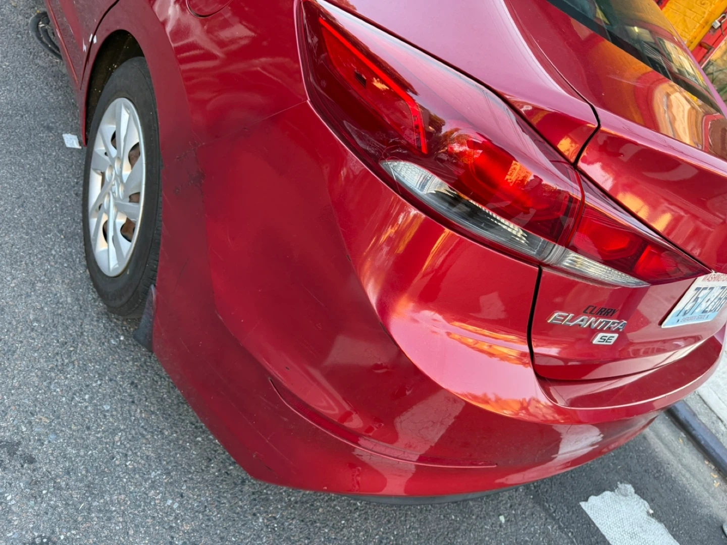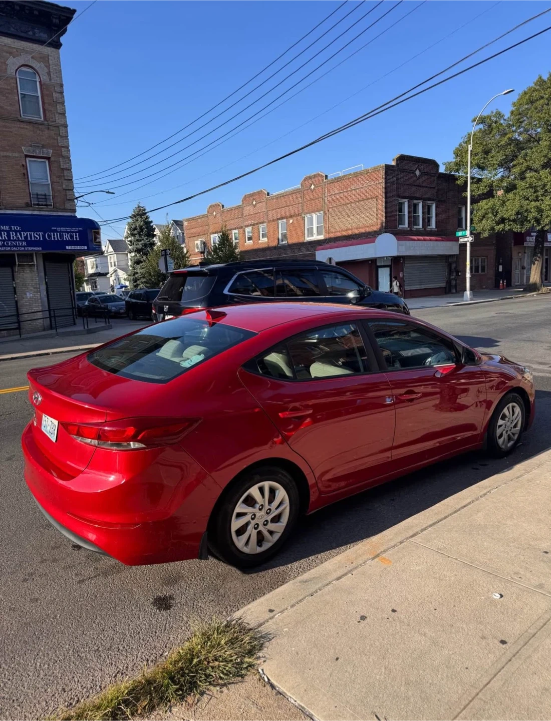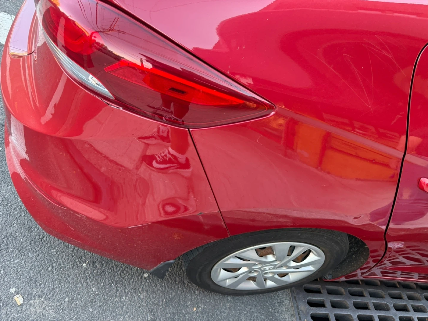 Selling a red Hyundai Elantra. It has some visible wear and scratches, as shown in the photos.