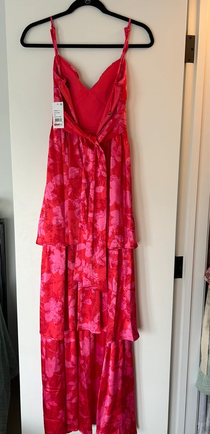 Selling a beautiful NWT floral tiered maxi dress in red, size XS! Good for people who are taller or wearing heels