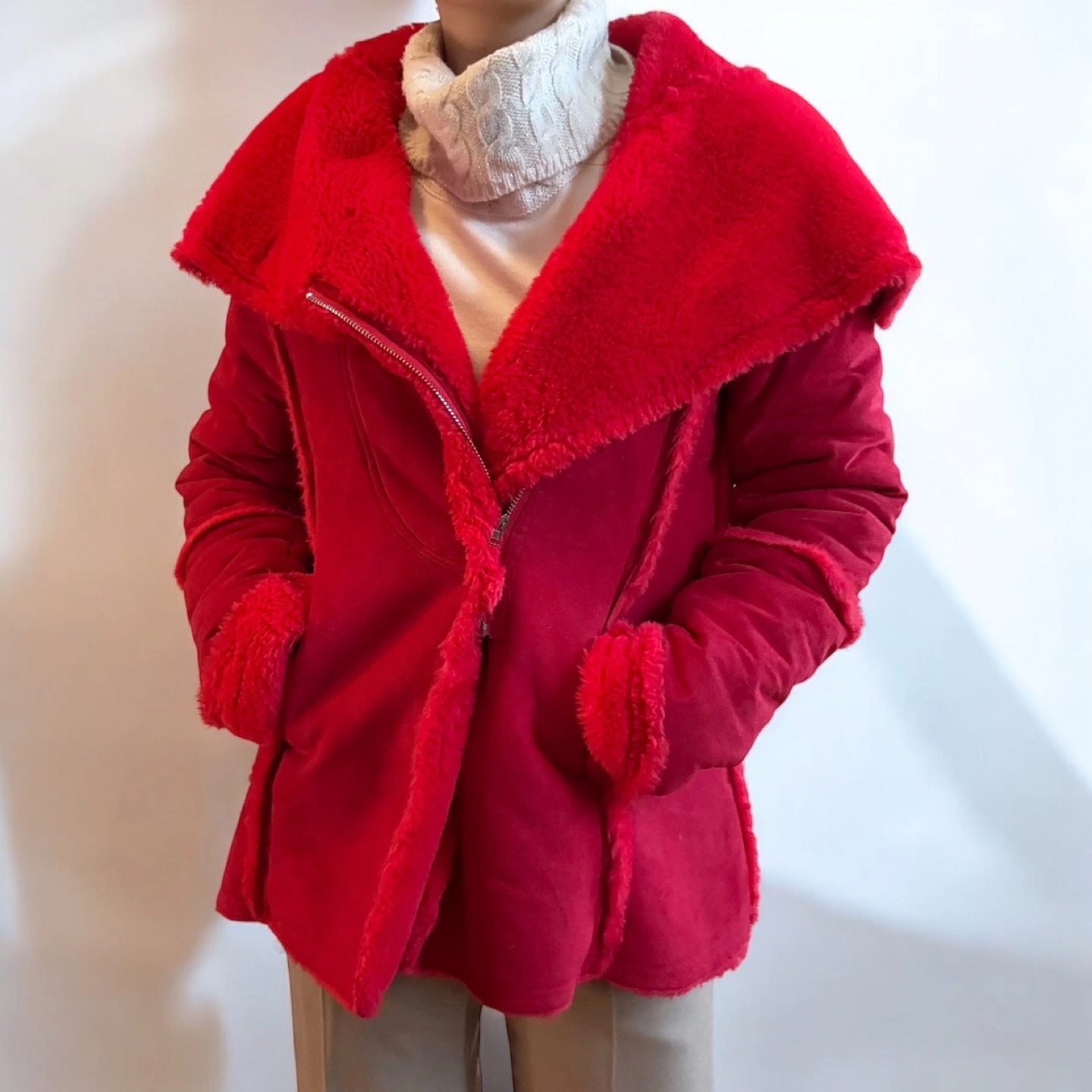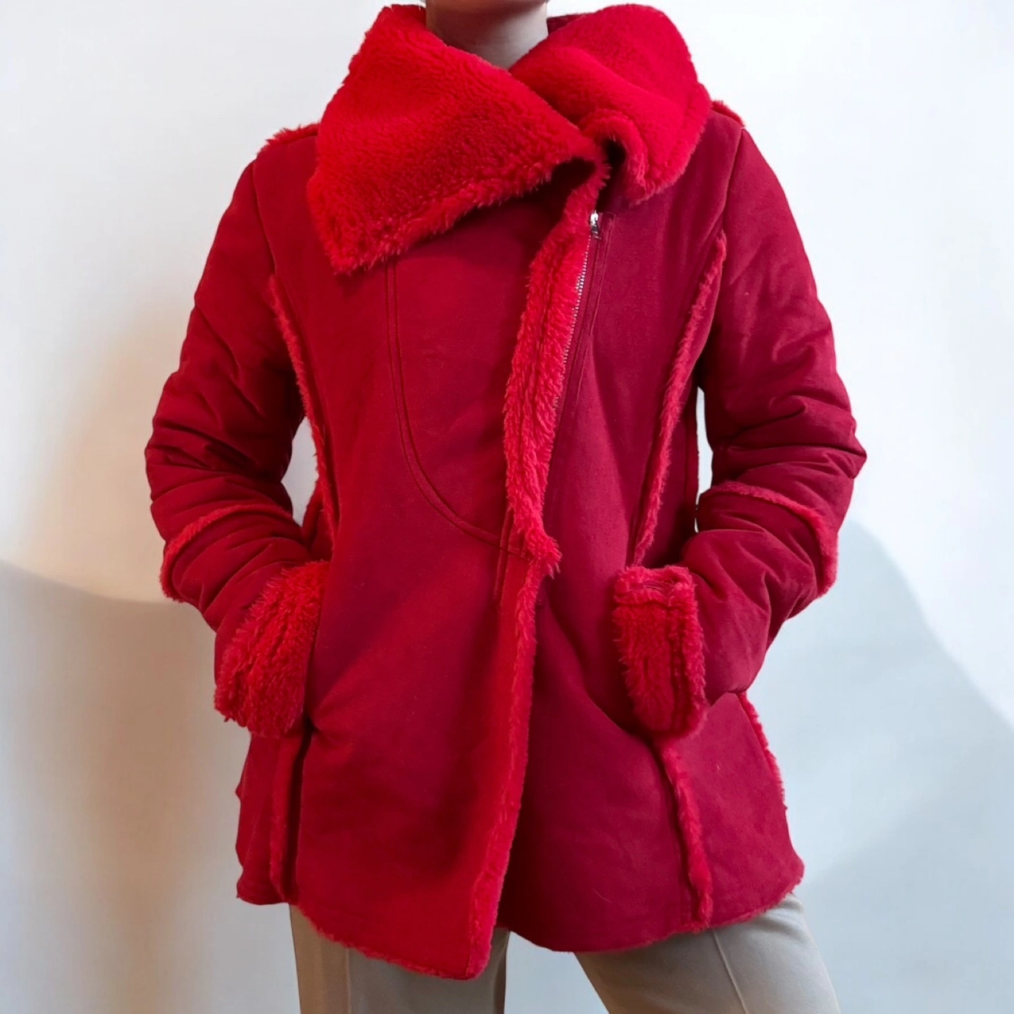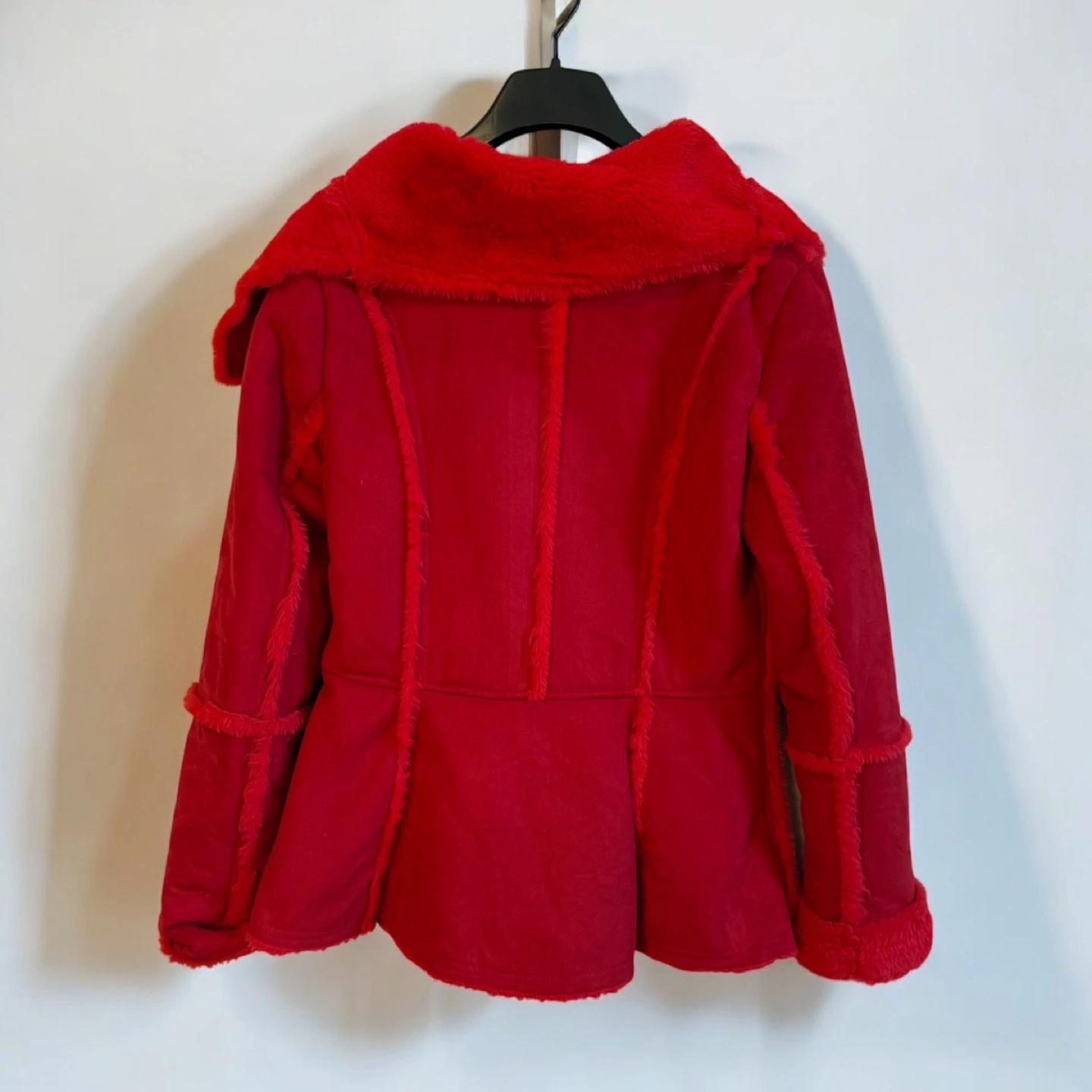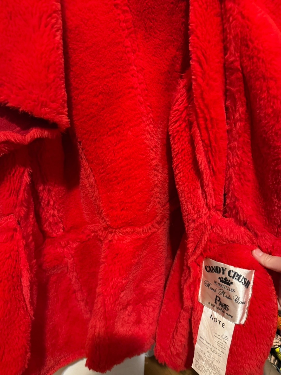 44Gorgeous red faux shearling coat and is a high quality handmade coat from Paris. Super lightweight and comfortable unlike real shearling leather coats. Brightens any outfit and complexion up for a dreary winter day. Would make an incredible going out coat as well. Can be styled with the collar up or down and has a super flattering cut at the waist. ✷ very good vintage condition ✷ fits XS-S ✷ shoulder: 17” ✷ pit: 18” ✷ waist: 17” ✷ length: 27” We’re on a mission to elevate and bring magic to pre-loved. Join us on instagram for giveaways, exclusive sales, and behind the scenes content @kkachi.shop 🖤 #shearlingcoat #shearlingjacket #furcoat #furjacket #redcoat red jacket saks Potts charlotte simone I am gia susanna chow jacquemus isabel marant acne studios maje ganni iro apparis ugg
