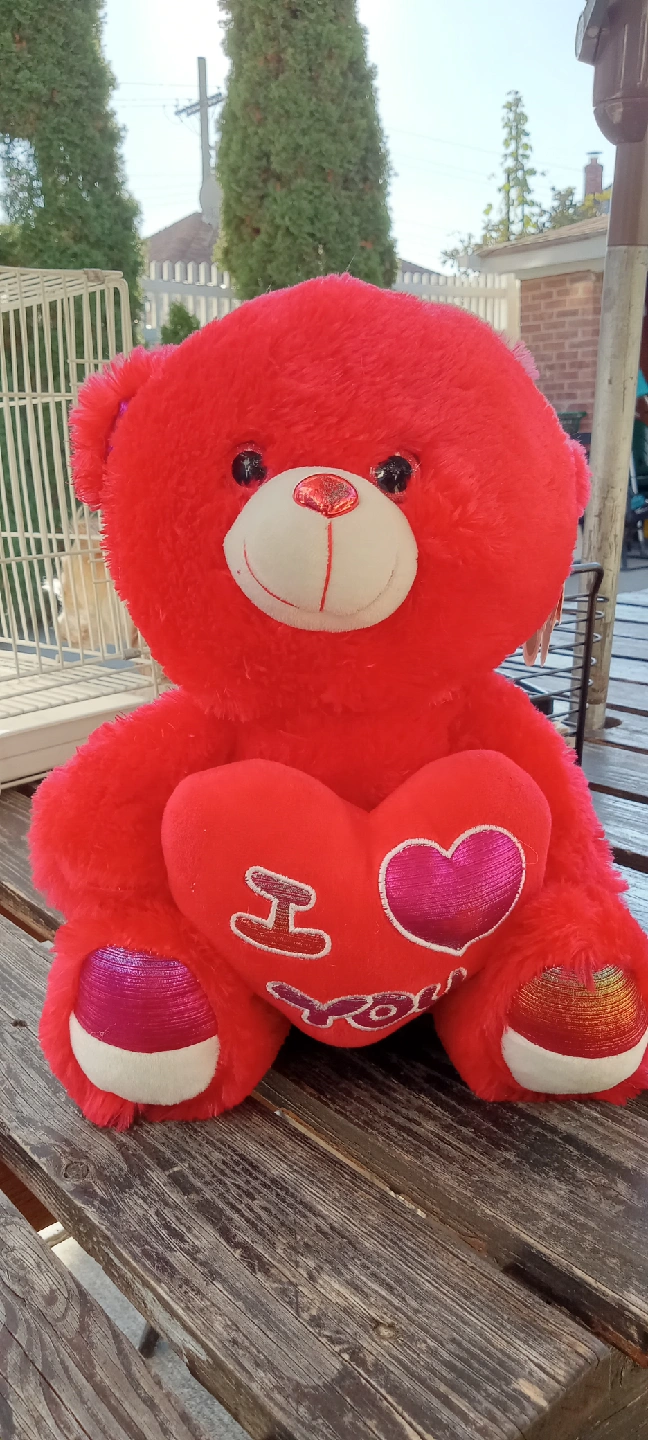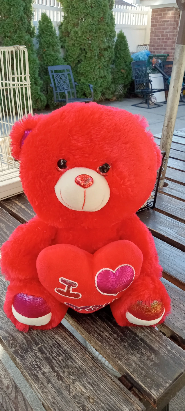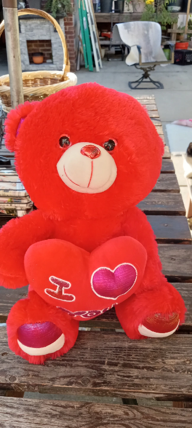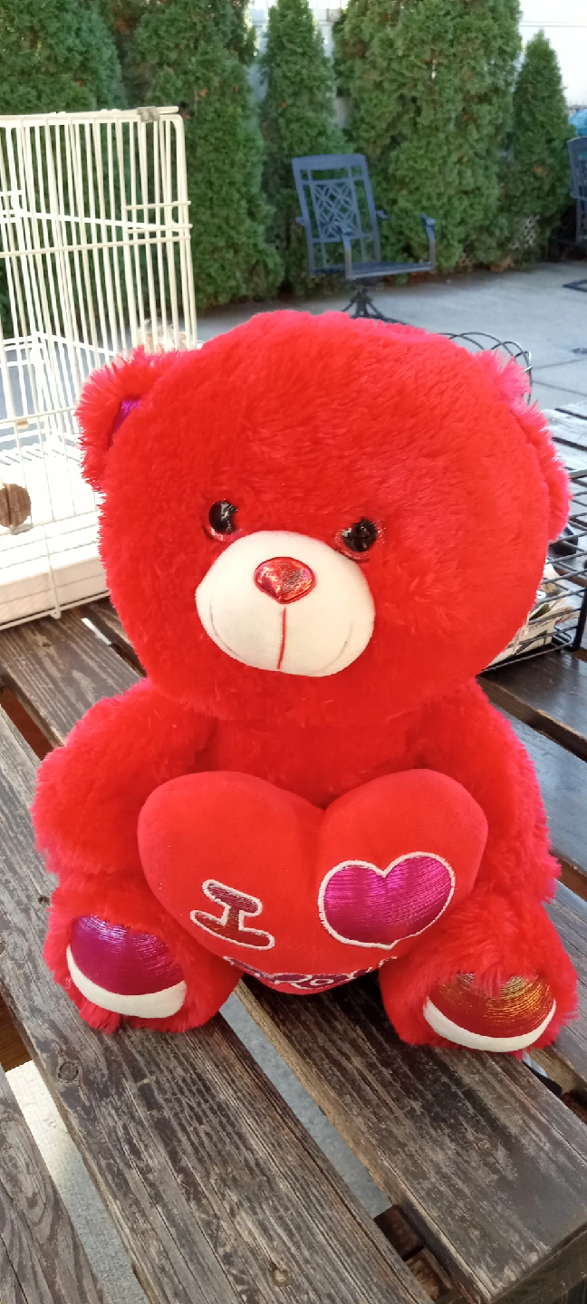 28Selling a cute red teddy bear holding a heart that says "I ❤️ You"! It's in great condition and ready for a new home