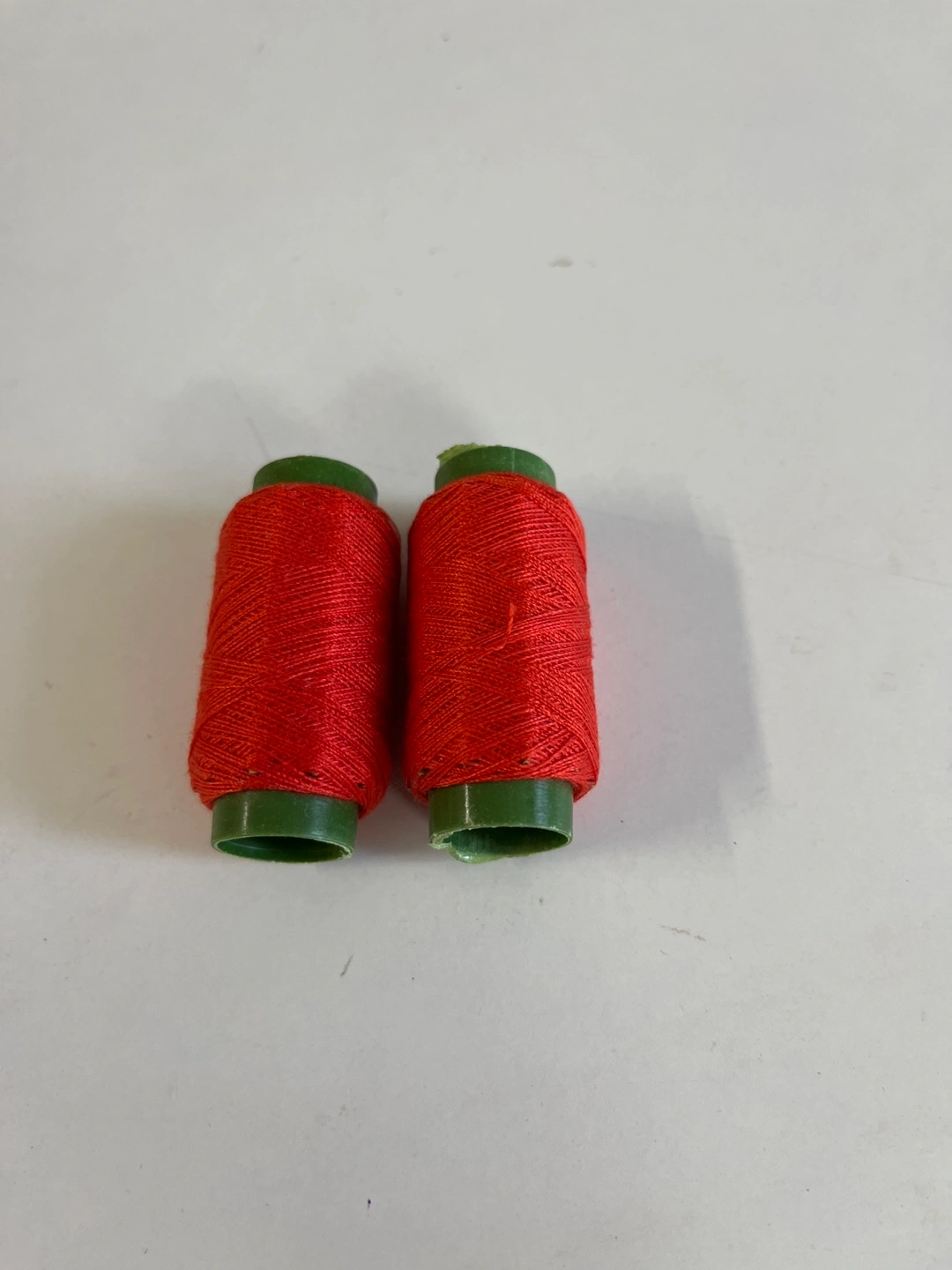 130Two spools of vibrant red thread, perfect for sewing and crafting projects