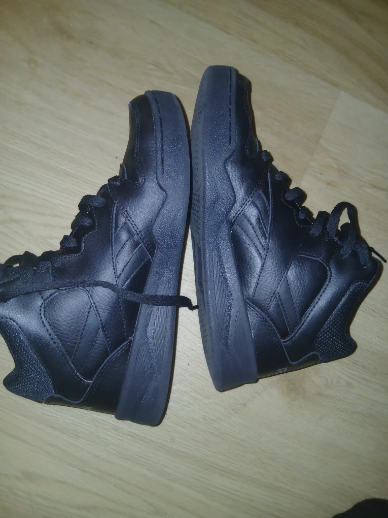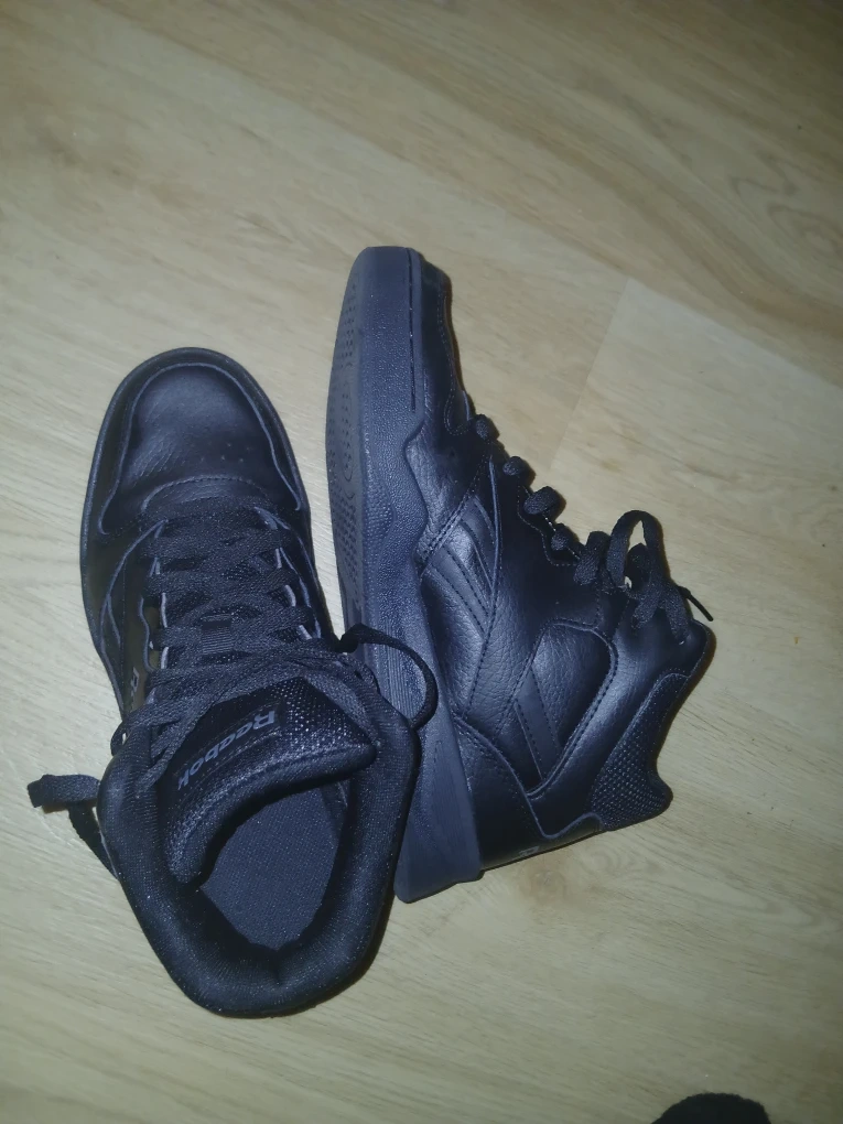 196Selling a pair of Reebok basketball shoes in black leather. They are in good condition and ready for a new home! These shoes are perfect for the court or casual wear