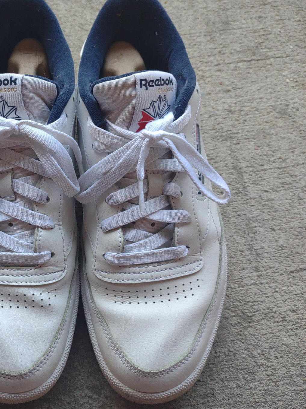Selling a pair of Reebok Classic sneakers in white! They show some signs of wear, but still have plenty of life left. Great for everyday wear or hitting the gym