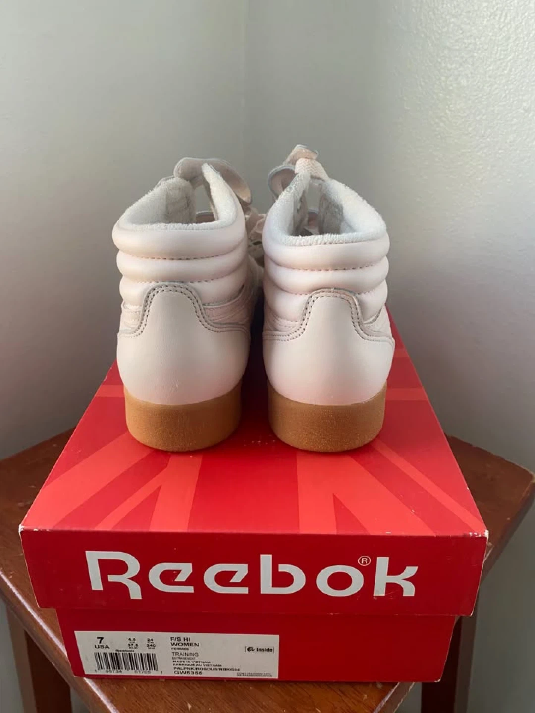 10Selling a pair of Reebok F/S HI women's sneakers, size 7. These are NIB and ready for a new home! The box is included