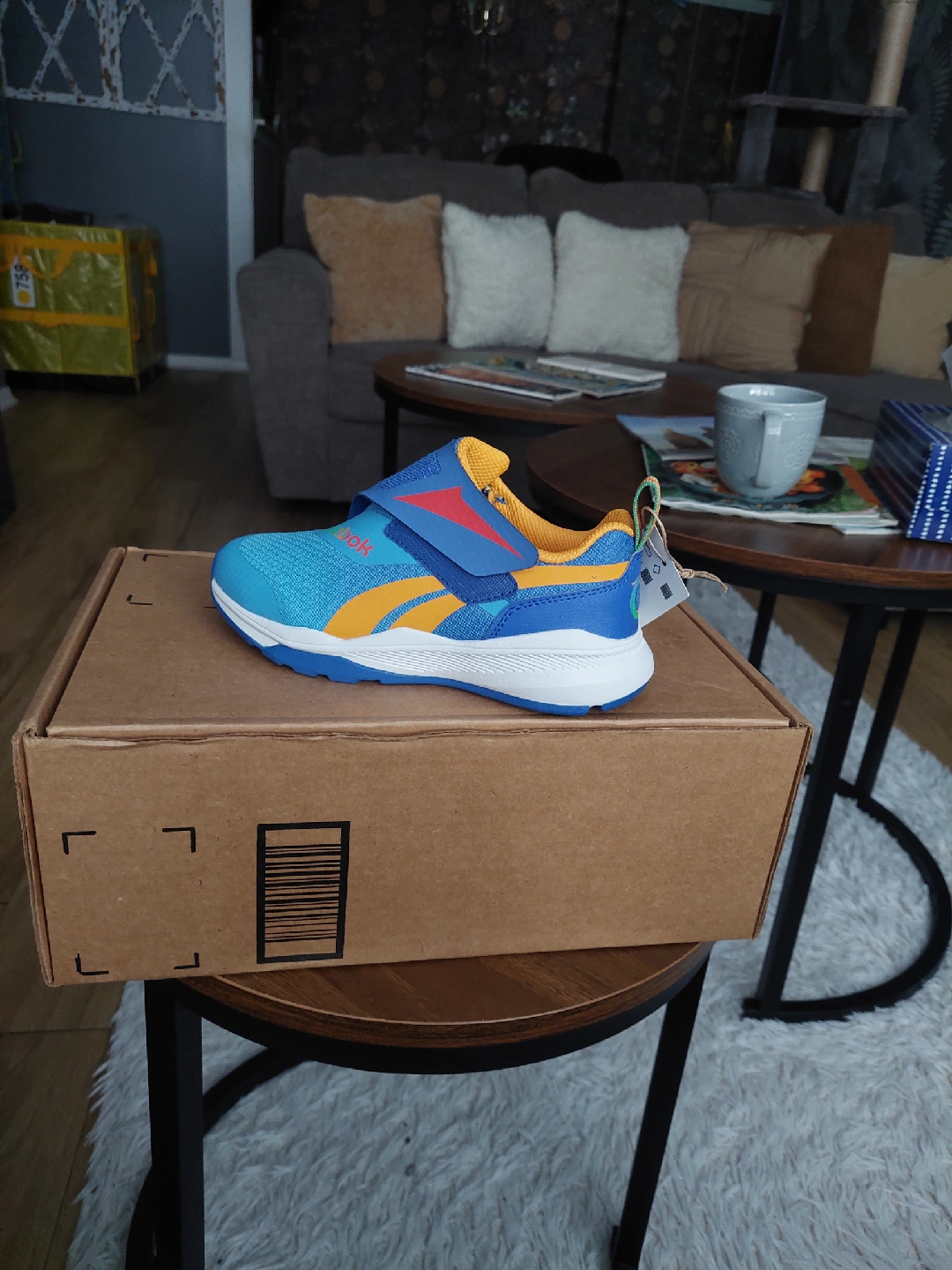 Selling a brand new pair of Reebok Kids' Rush Runner 4.0 shoes! They come in the original box and are ready for a new home. These shoes feature a vibrant blue, red, and yellow color scheme that kids will love. Perfect for running and playing!
