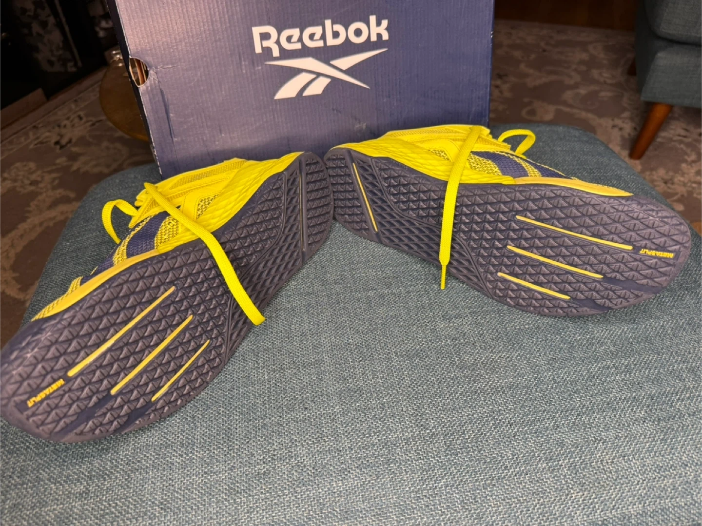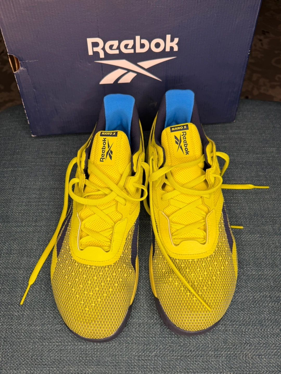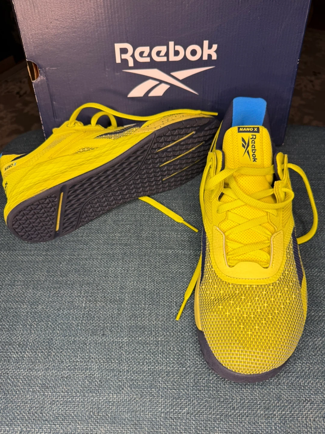 Selling a pair of Reebok Nano X training shoes in yellow! They're in great condition and come with the original box. Perfect for your next workout!