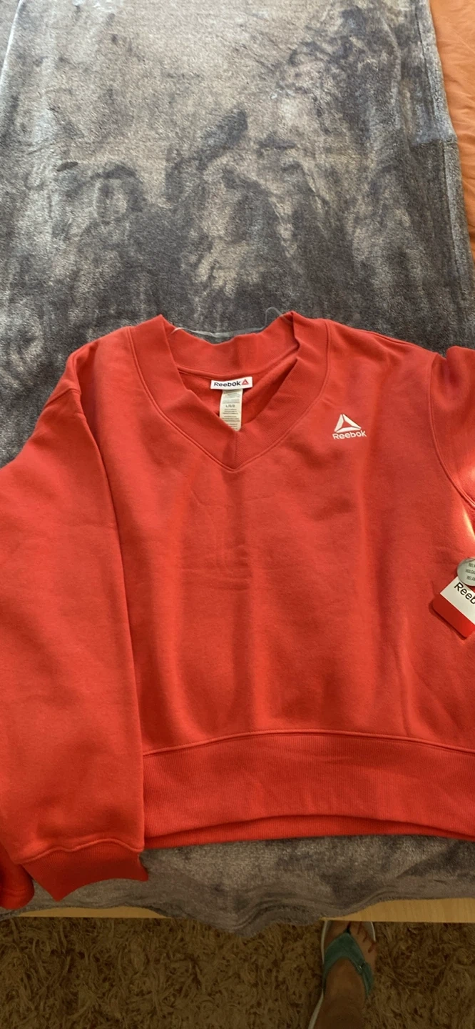 Selling a cute Reebok set! It includes a skirt and sweatshirt, both in a vibrant pumpkin, orange, color. Perfect for a sporty and stylish look! Sold as a set