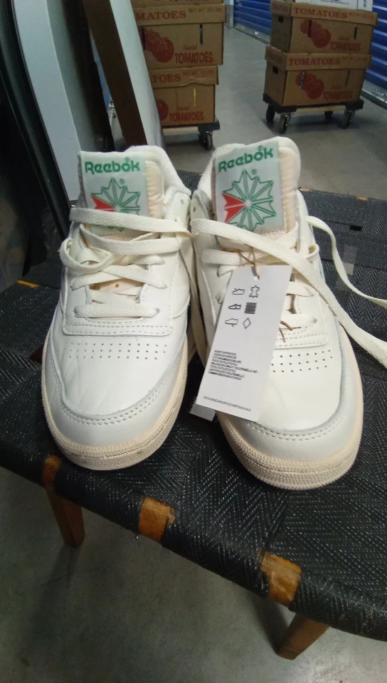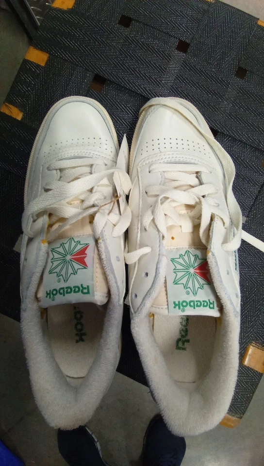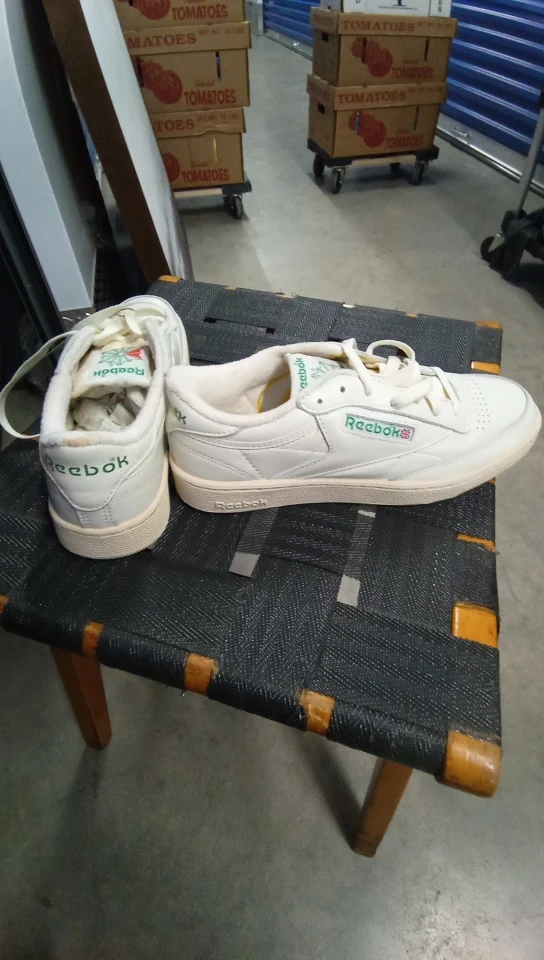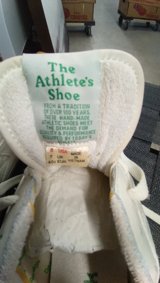 Selling a pair of Reebok "The Athlete's Shoe" sneakers in a US size 8. These shoes have a classic design and are in good condition. The tongue tag indicates that they are made from a tradition of over 100 years and meet the demand for quality and performance required by today's athlete