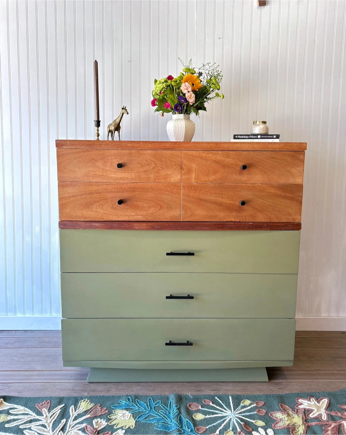 55Beautiful mid-century dresser by Kent Coffey, thoughtfully refinished in a soft sage green with touches of its natural wood for a warm, charming contrast. All dovetailed drawers slide smoothly and are solid and stable. Features brand new hardware and is fully sealed with a durable topcoat for long-lasting use. A timeless piece that brings a pop of color and vintage style to any space! Dimensions: W 20โ x L 40โ x H 42โ ๐ต Cash only, no holds ๐ Pickup in Chicago, Portage Park area Like is on Facebook at MiChi Co. https://www.facebook.com/profile.php?id=61551674170987&mibextid=LQQJ4d Follow us on TikTok MiChiFurniture https://www.tiktok.com/@michifurniture?_t=ZT-8wu7mZvRRj4&_r=1