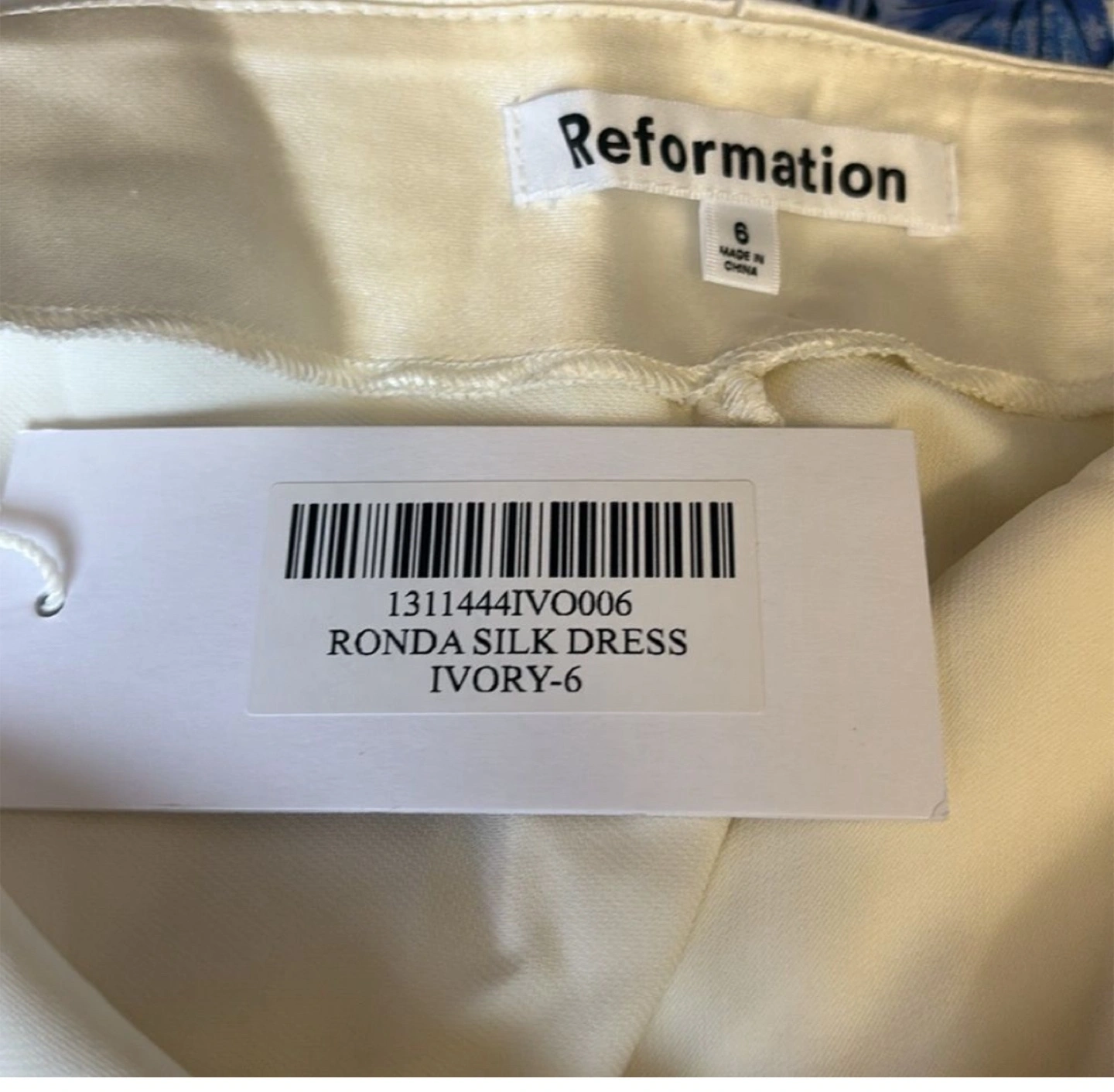 Selling a Reformation Ronda Silk Dress in size 6 and the color is Ivory. It's a beautiful dress! Brand New