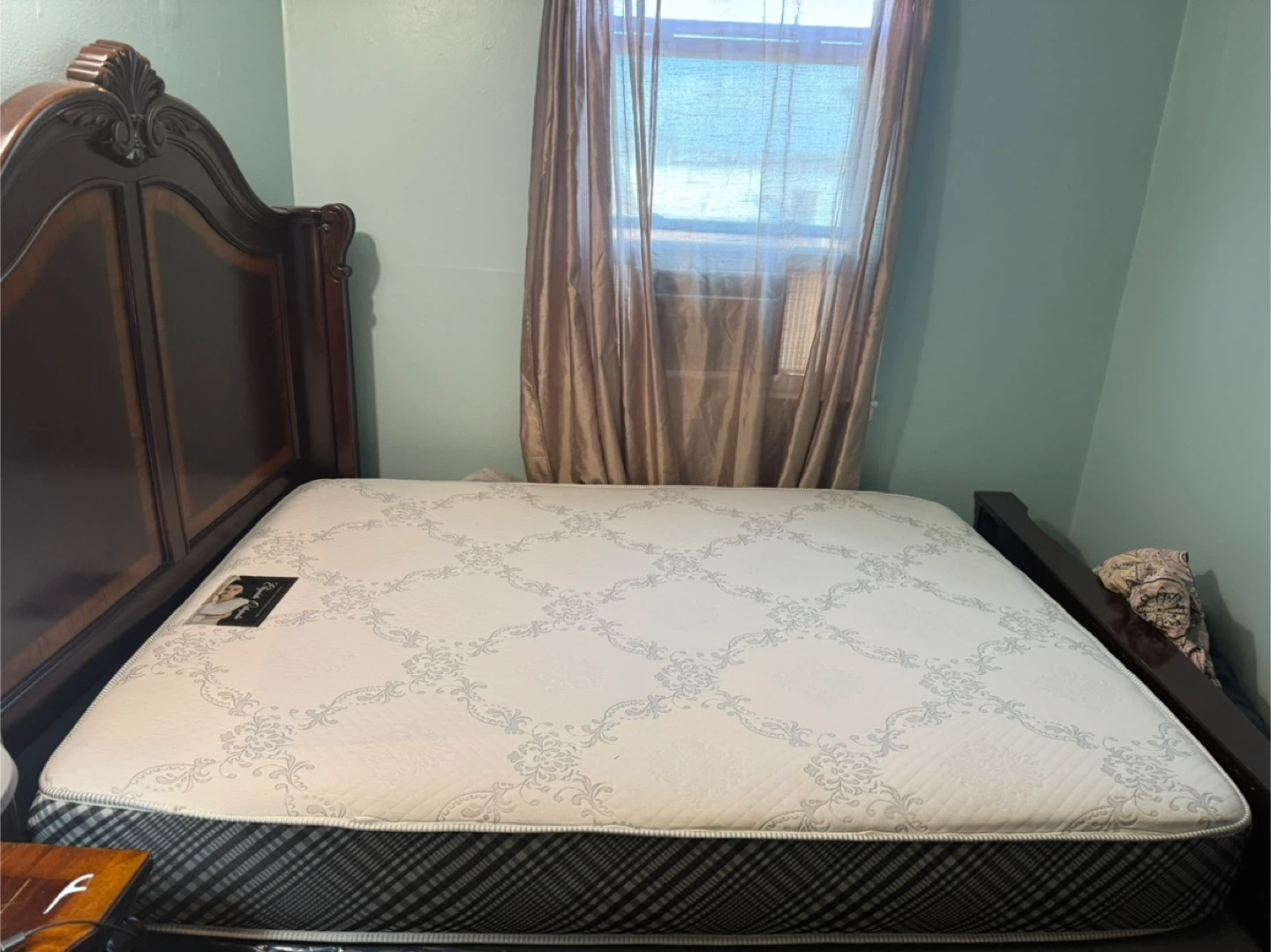 Selling a Regency Collection mattress. It has a beautiful floral pattern on top and a black and white checkered pattern on the sides. It is in great condition and ready for a new home