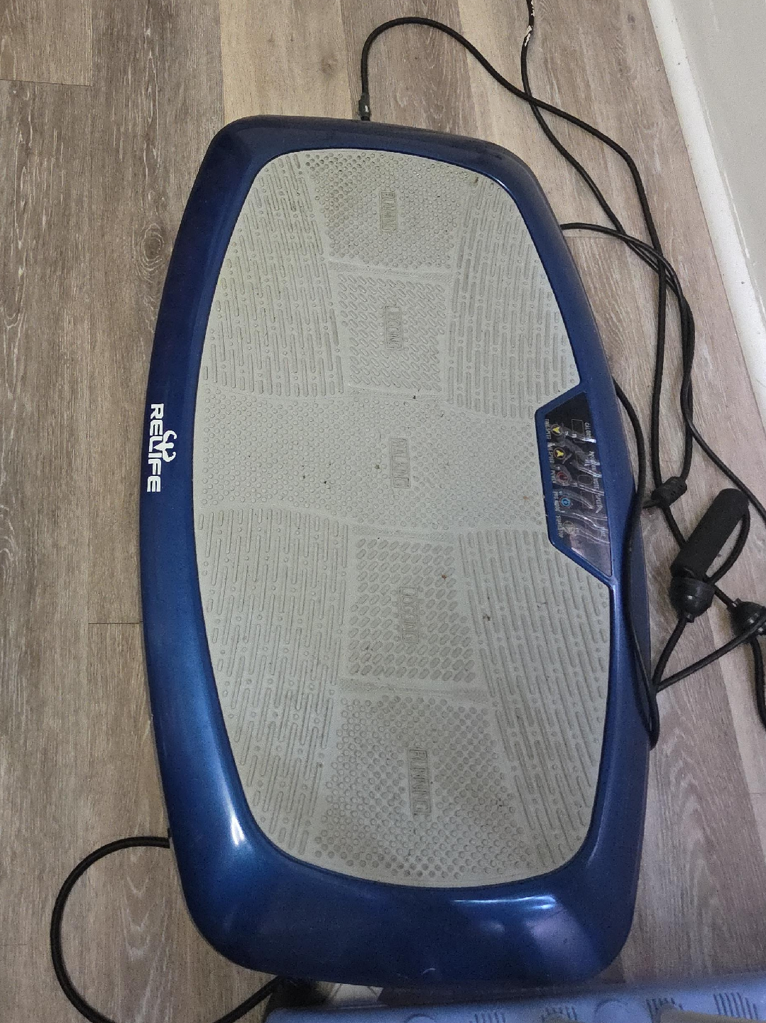 Selling a ReLife vibration plate in good condition. It's great for getting a quick workout in at home! Comes with all the necessary cords and a remote.