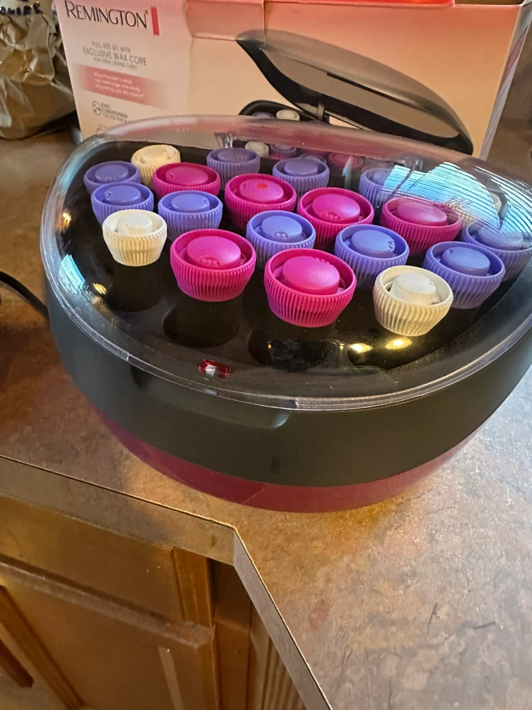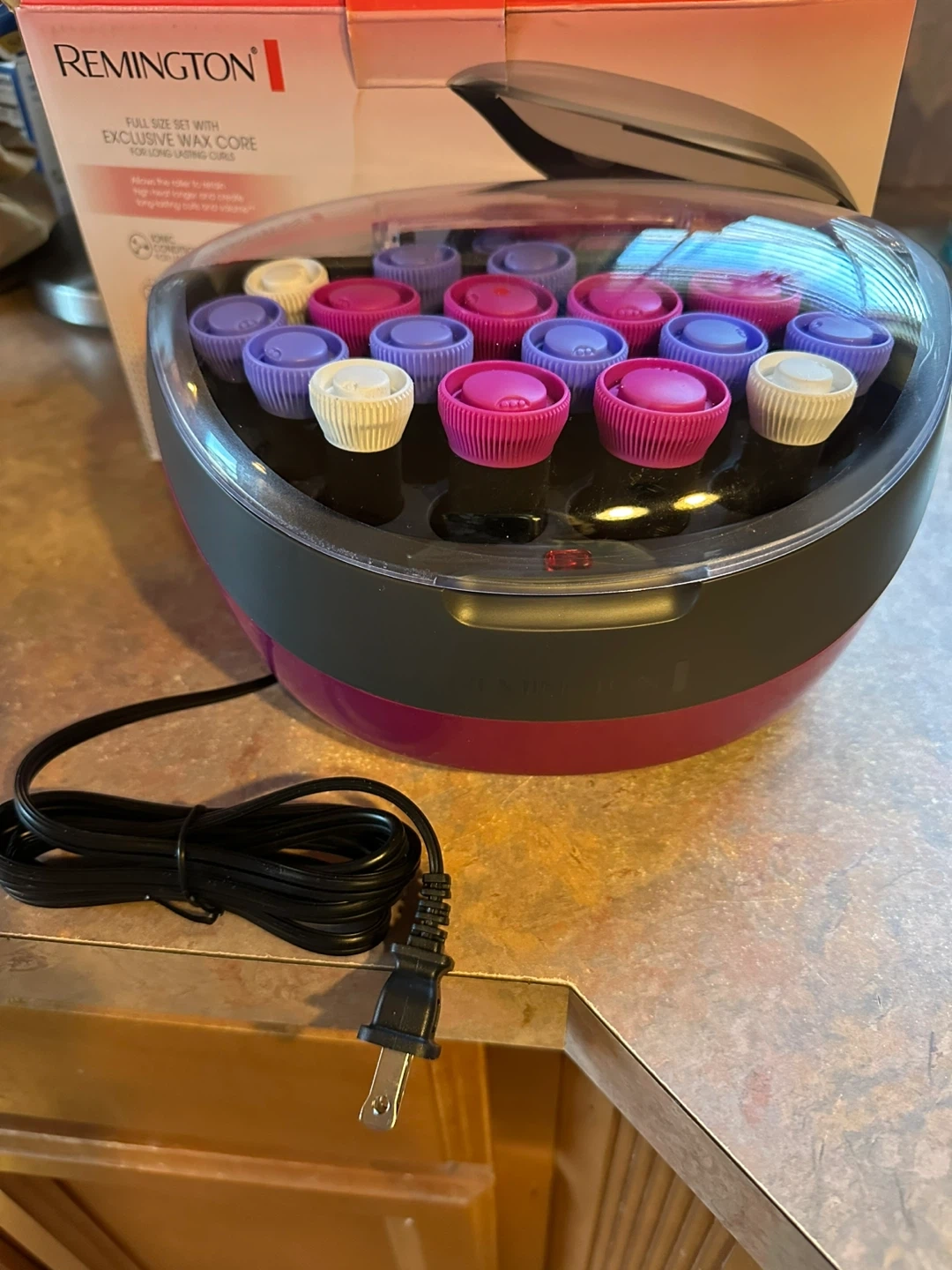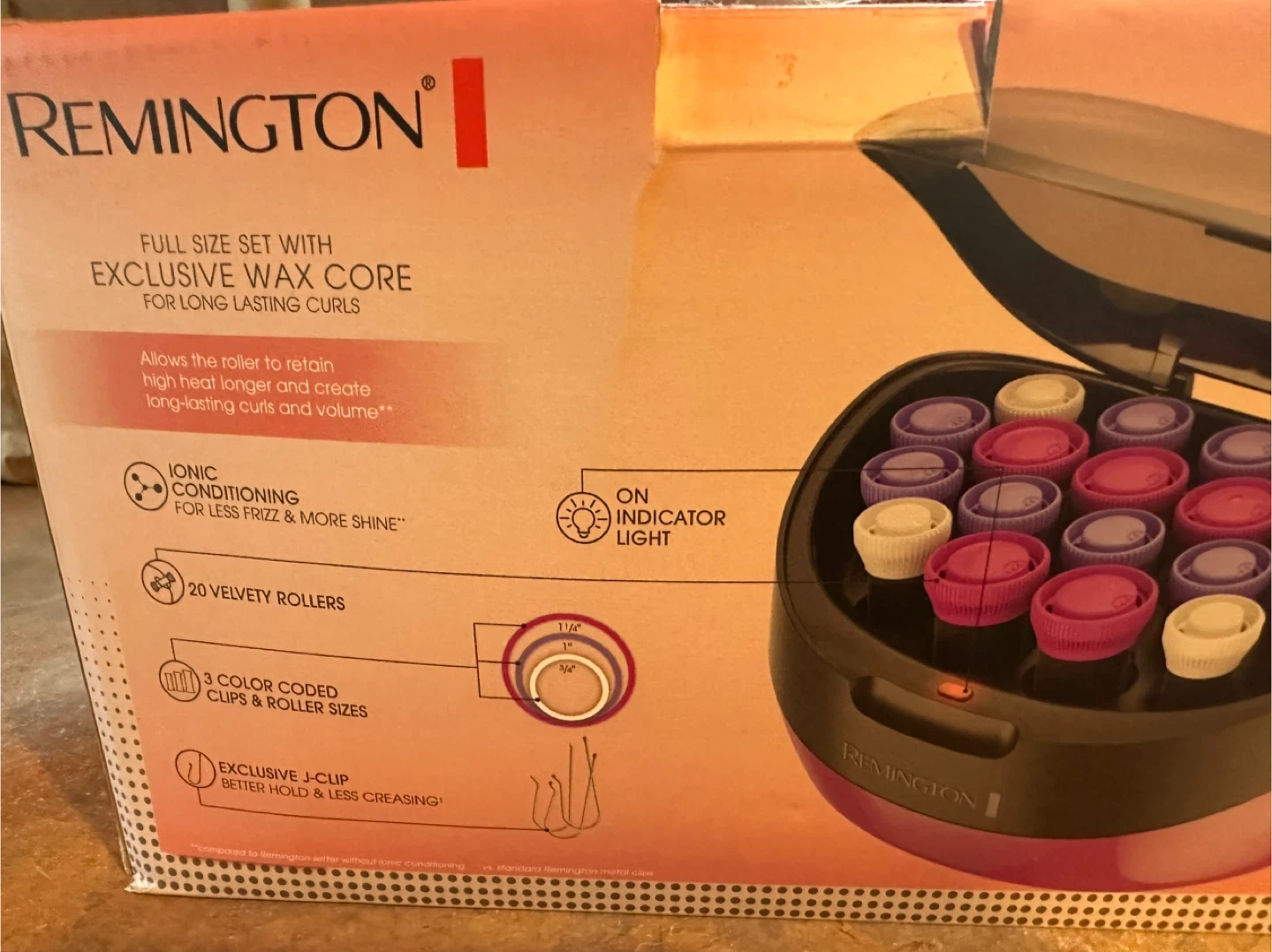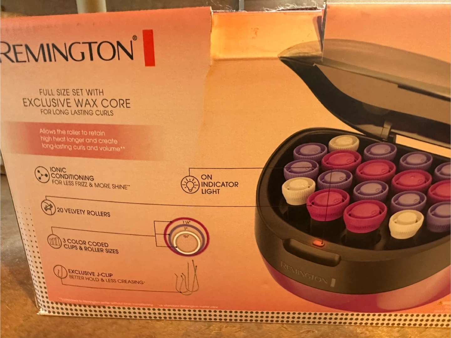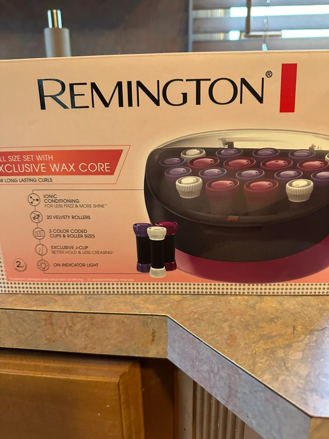 I'm selling a Remington full-size set of hair rollers with an exclusive wax core for long-lasting curls! The set includes 20 velvety rollers. They are color-coded for different clip and roller sizes. The rollers also feature ionic conditioning for less frizz and more shine! Used one time! Only used 4 curlers! *MAKE AN OFFER*