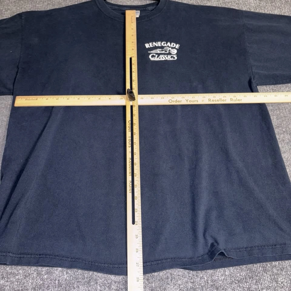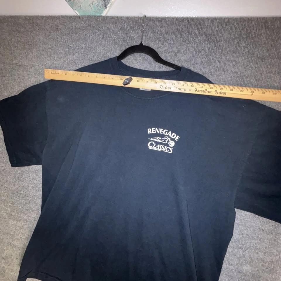 65Rev up your wardrobe with this bold Renegade Classics “Raw Power USA” biker tee, perfect for motorcycle enthusiasts. Featuring a flaming custom chopper on the back and a Renegade Classics logo on the chest, this shirt delivers heavyweight comfort and high-octane style. Let me know if you're interested!