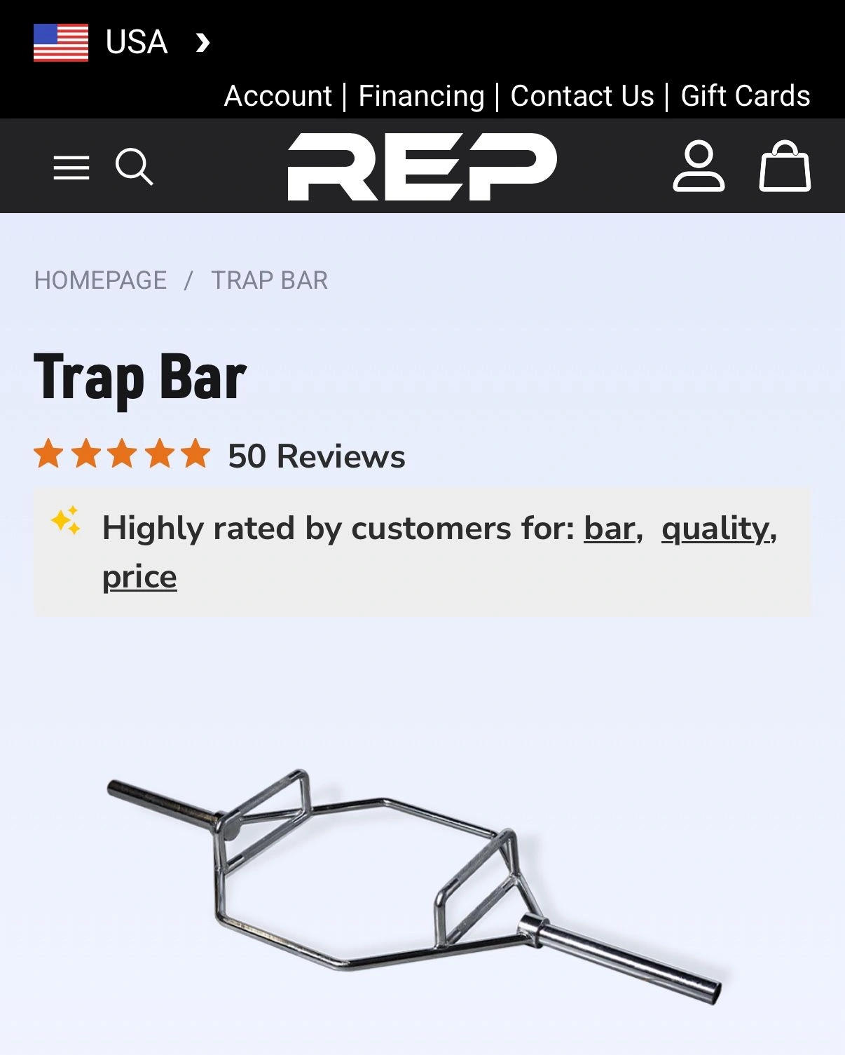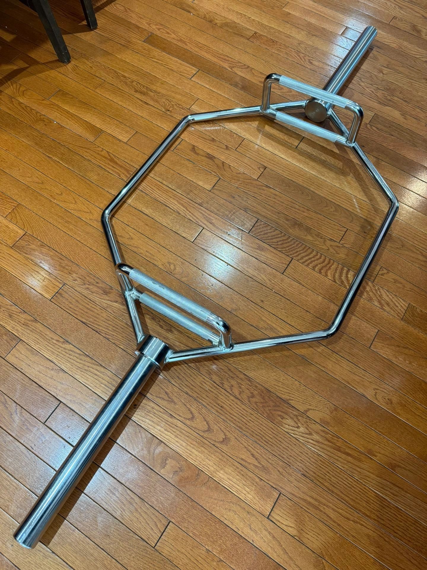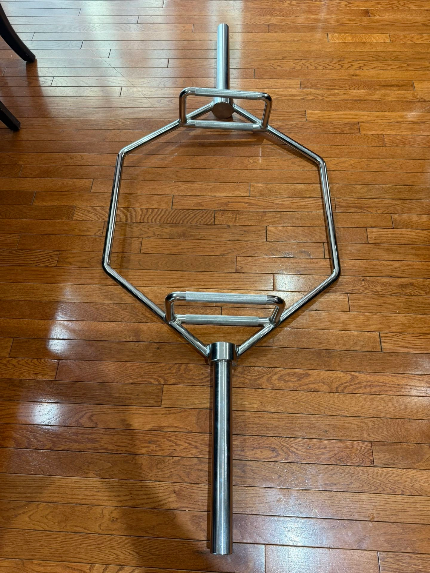 15Rep Fitness Hex Bar in Pristine condition. Not a crappy Amazon/Walmart bar. This bar is capable of heavy loads and will not bend or snap on you. This bar has 16” sleeves and can handle more weight. Most normal trap bars have short sleeves. This one can handle more bumpers. Type: Olympic Brand: Rep Fitness