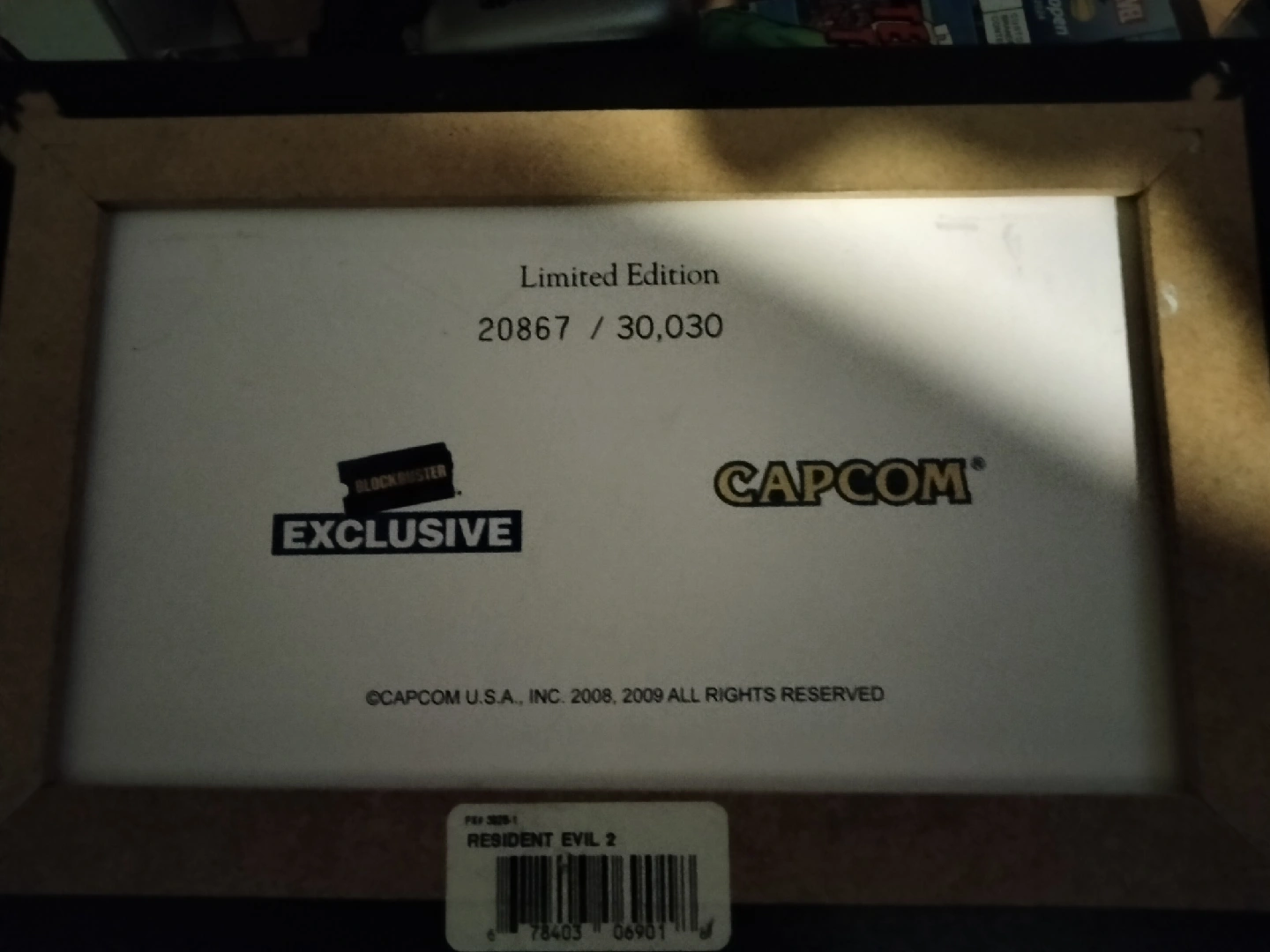 10Selling a limited edition framed print of Resident Evil 5. This is a Blockbuster Exclusive and is numbered 20867 out of 30,030. A must-have for any Resident Evil fan!