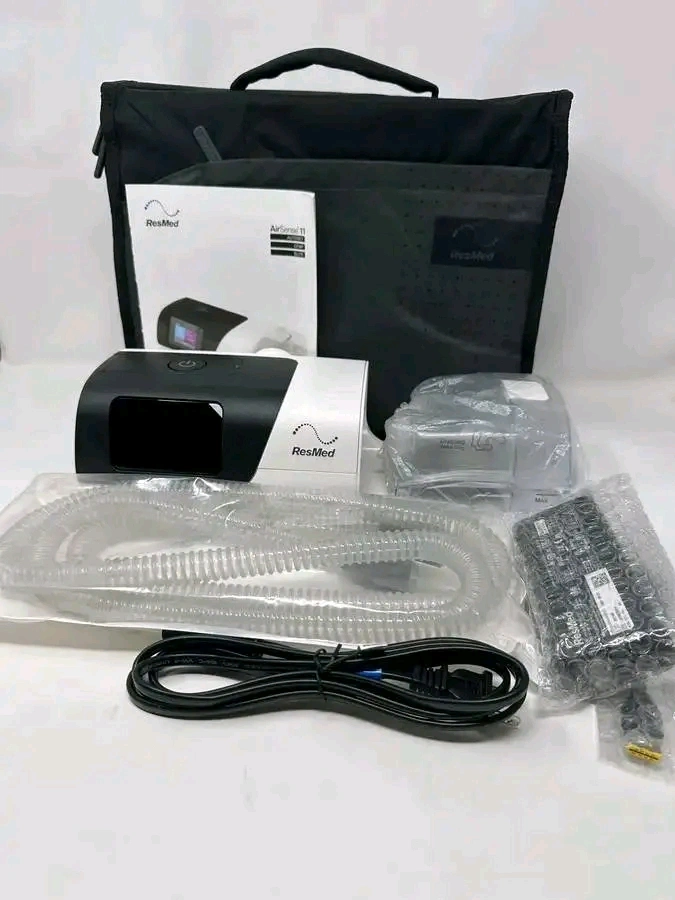 Selling a ResMed AirSense 11 CPAP machine. It comes with all the components you see here: the machine itself, tubing, power adapter, and carrying case. If you need a reliable CPAP machine, this could be it!